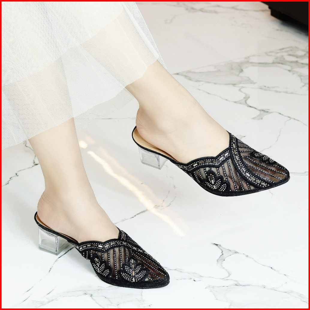 Herdian Bp 02 Sandal Heels Wanita Hak Kaca 5 Cm Open Toe Heels Pesta