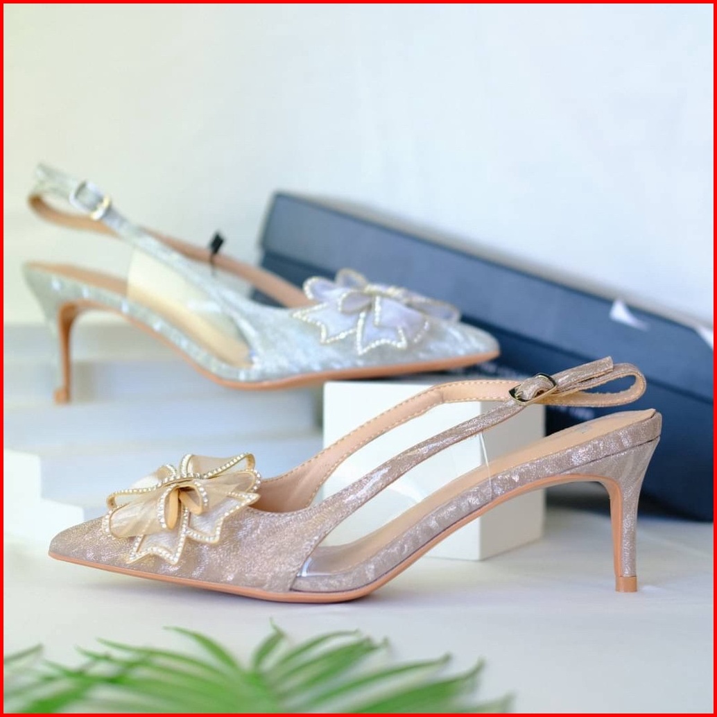 Sepatu Wanita Slingback High Heels Zs452 Silver-rosegold
