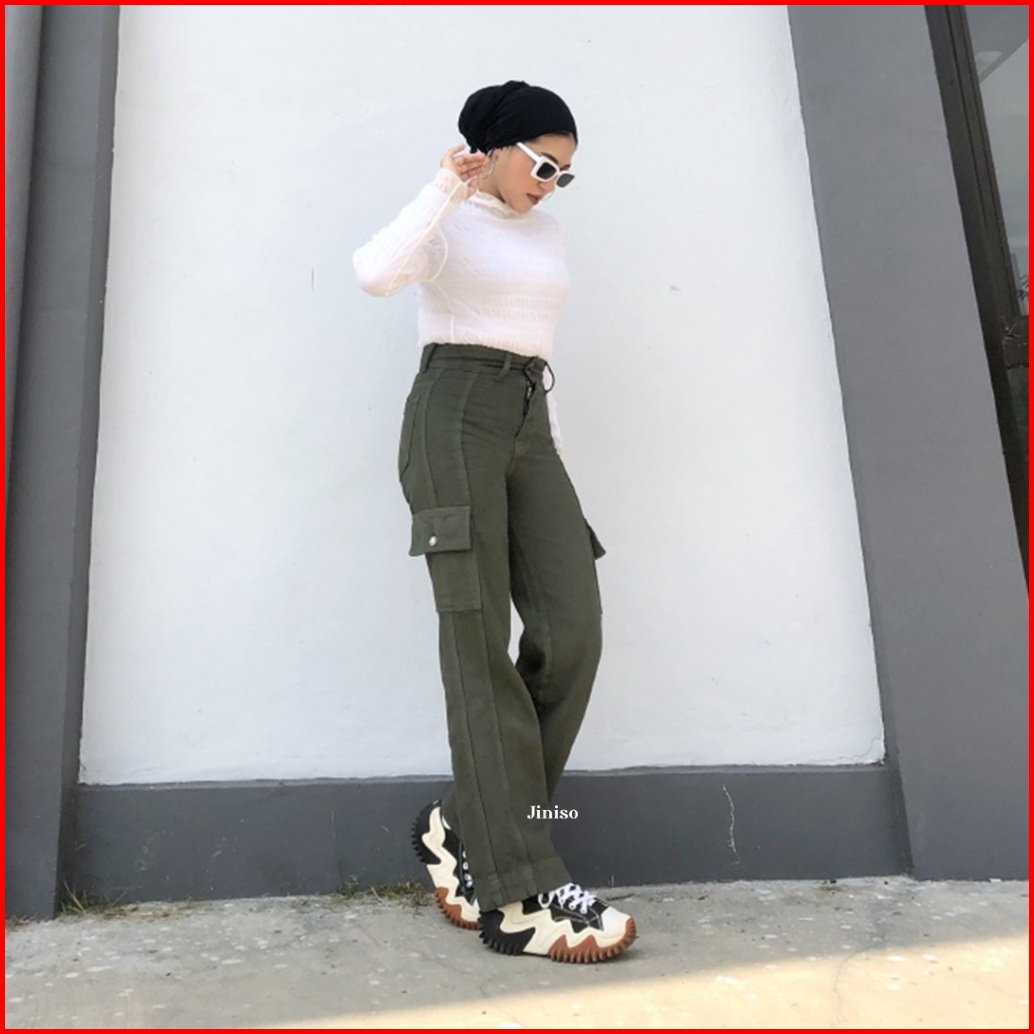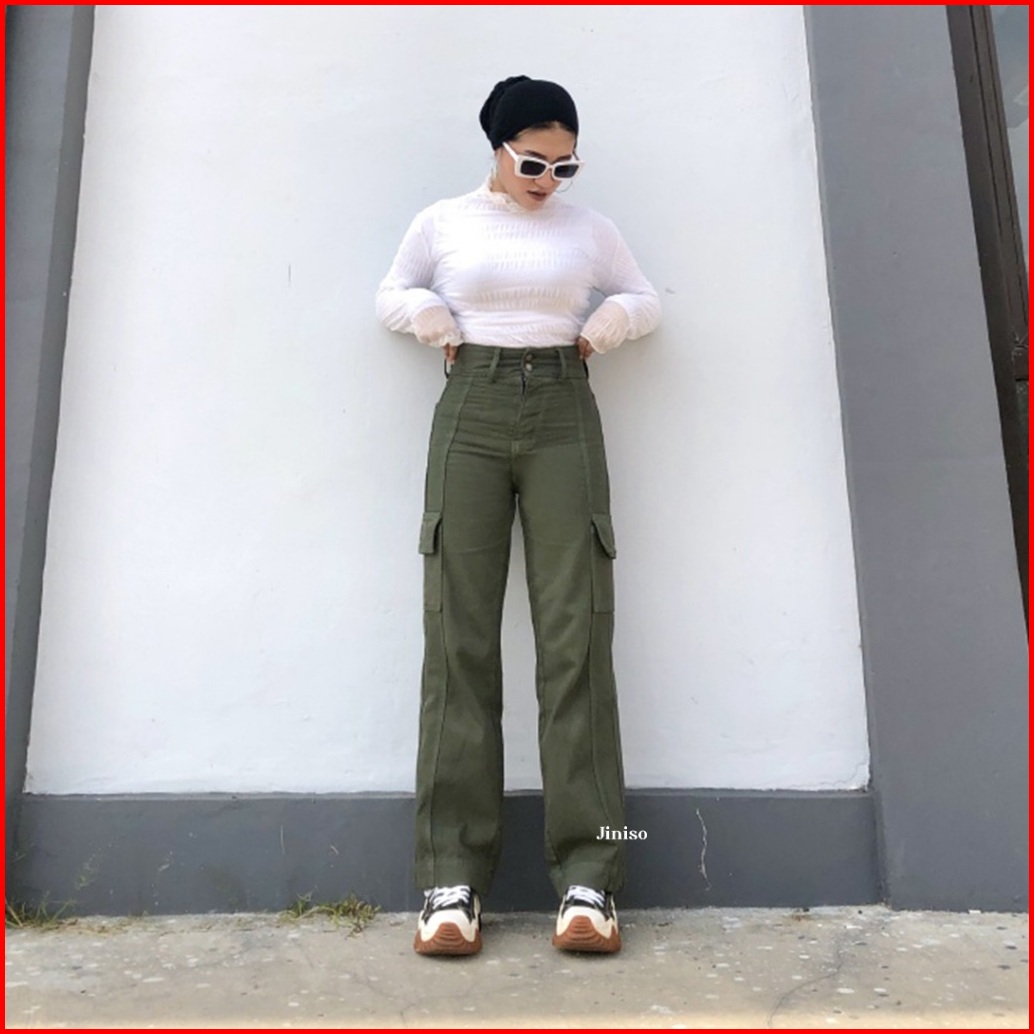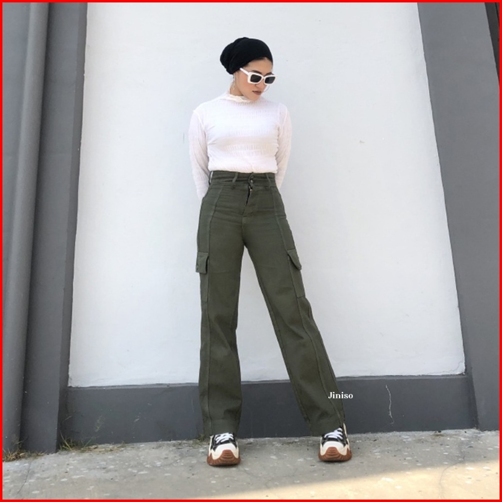 Jiniso - Highwaist Cargo Loose Jeans 400 Hands Up