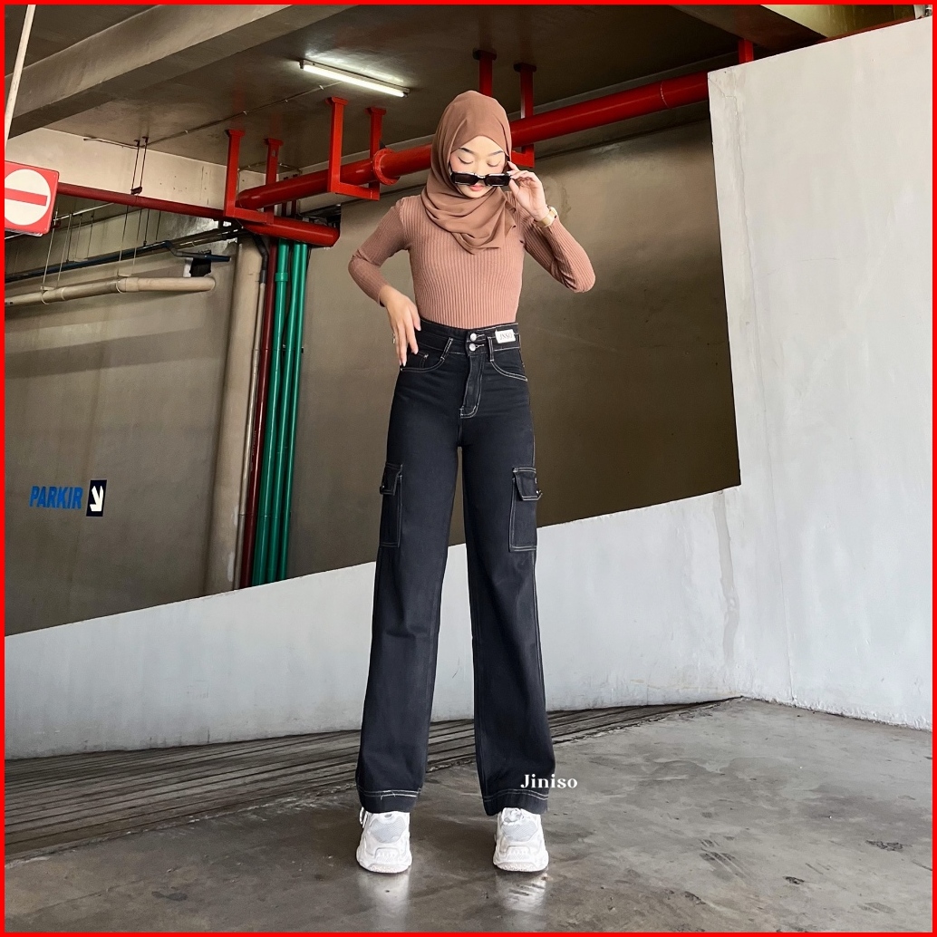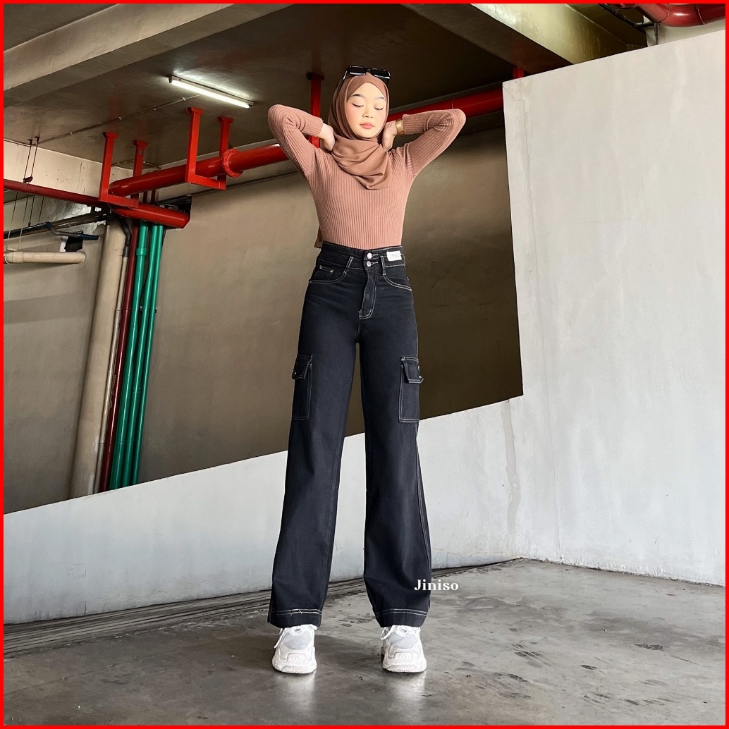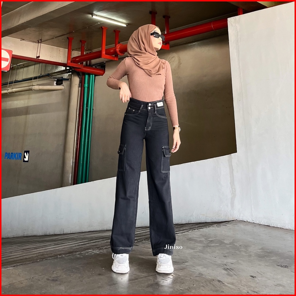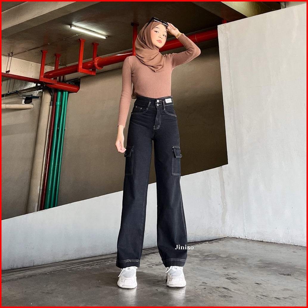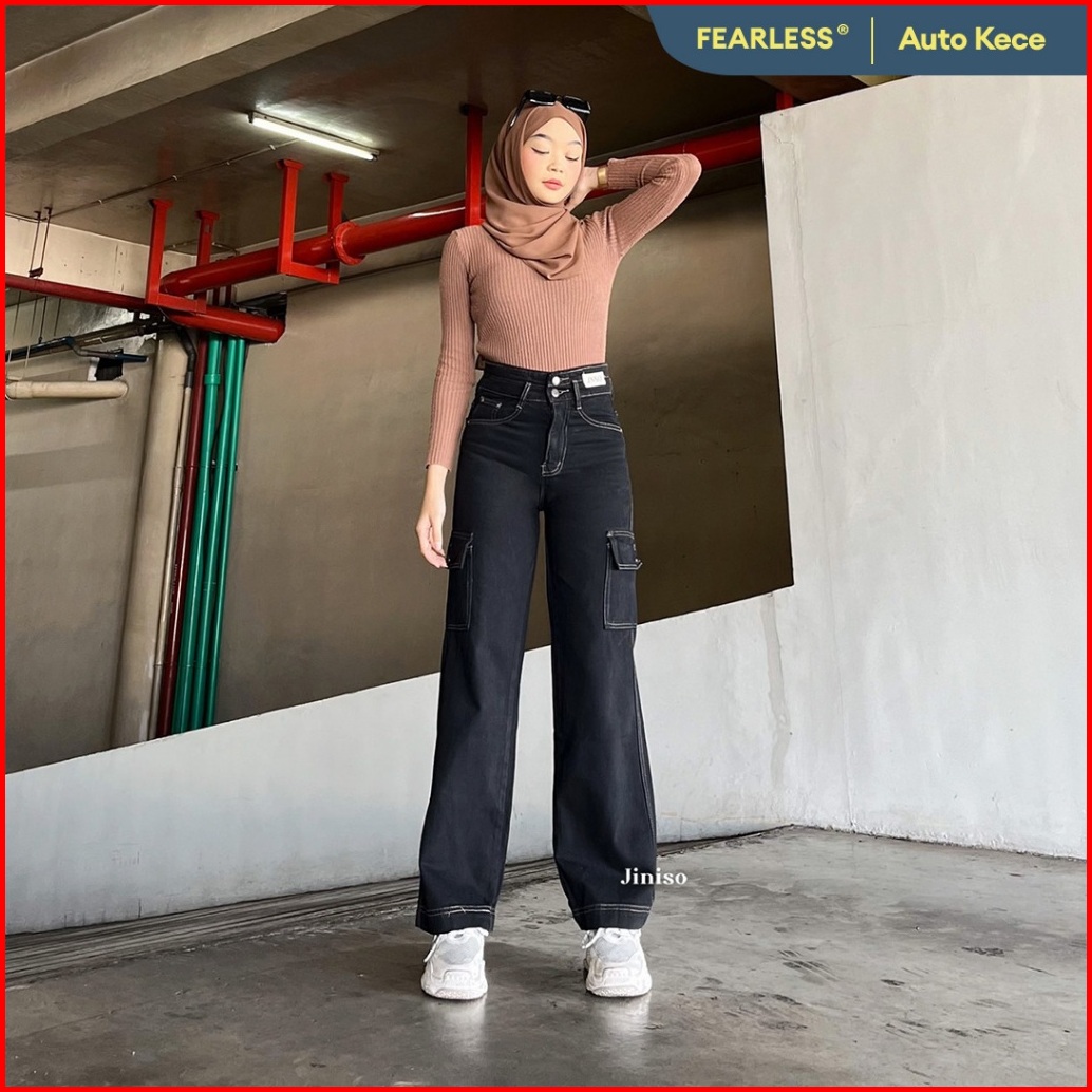 Jiniso - Highwaist Cargo Loose Jeans 459 Fearless