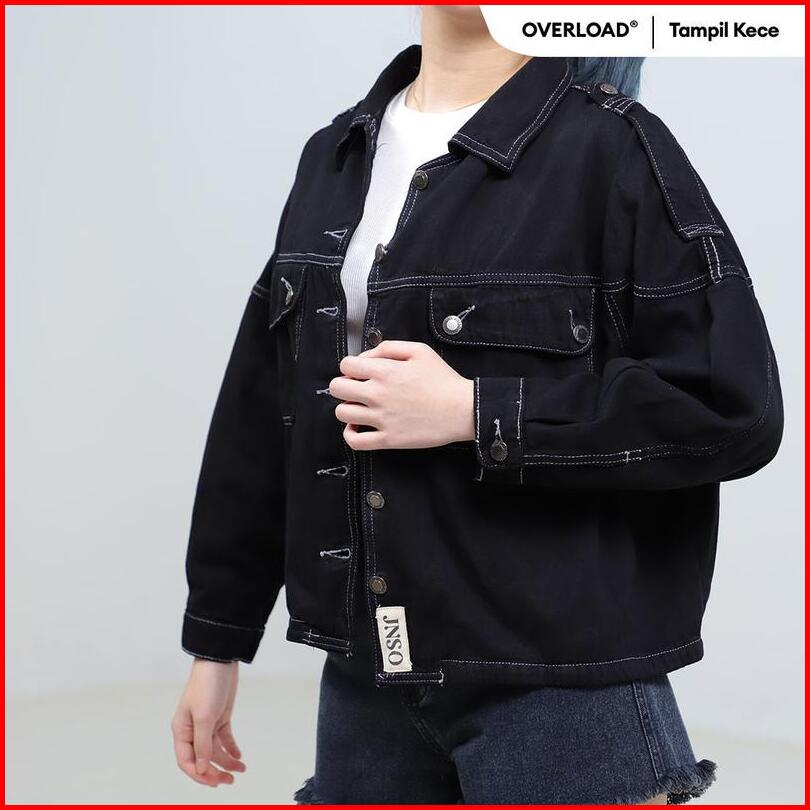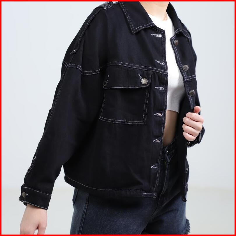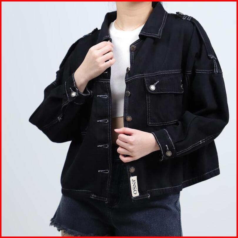 Jiniso Jaket Crop Jeans Oversize Pocket Black Oreo