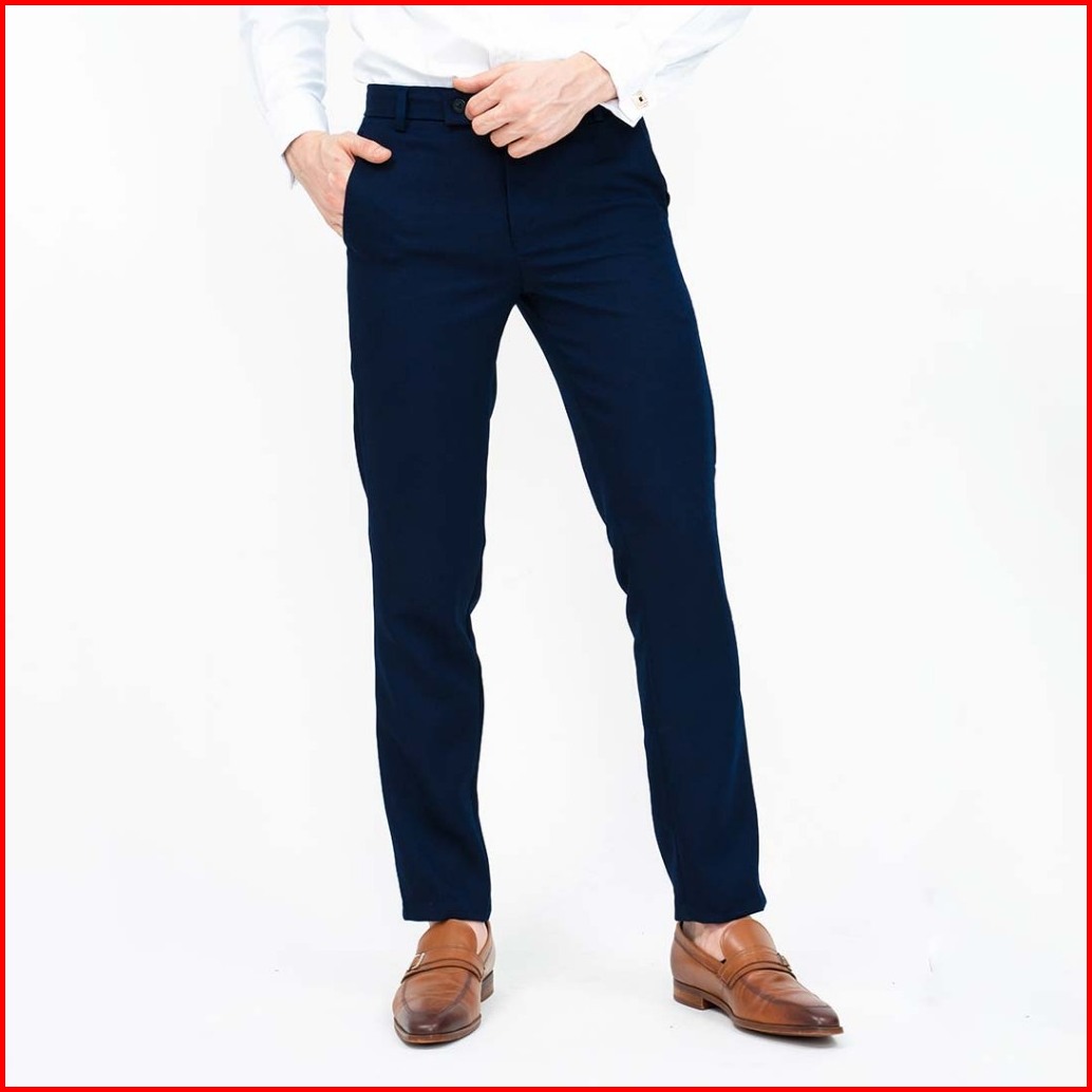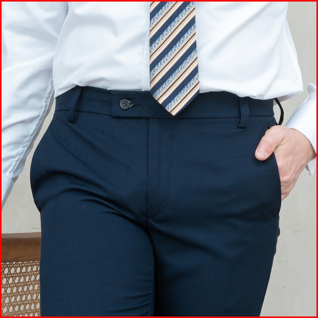 Celana Panjang Pria Slim Fit Kerja Formal Button Bahan Stretch Navy