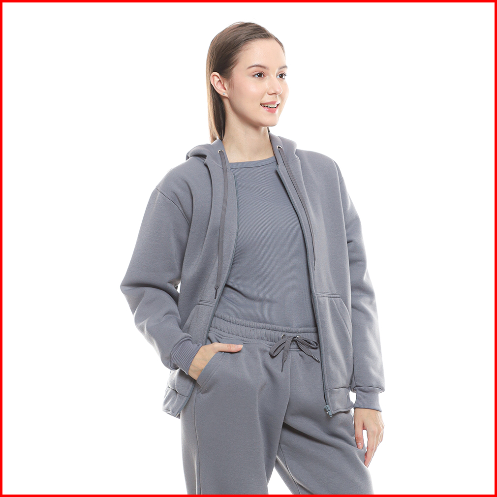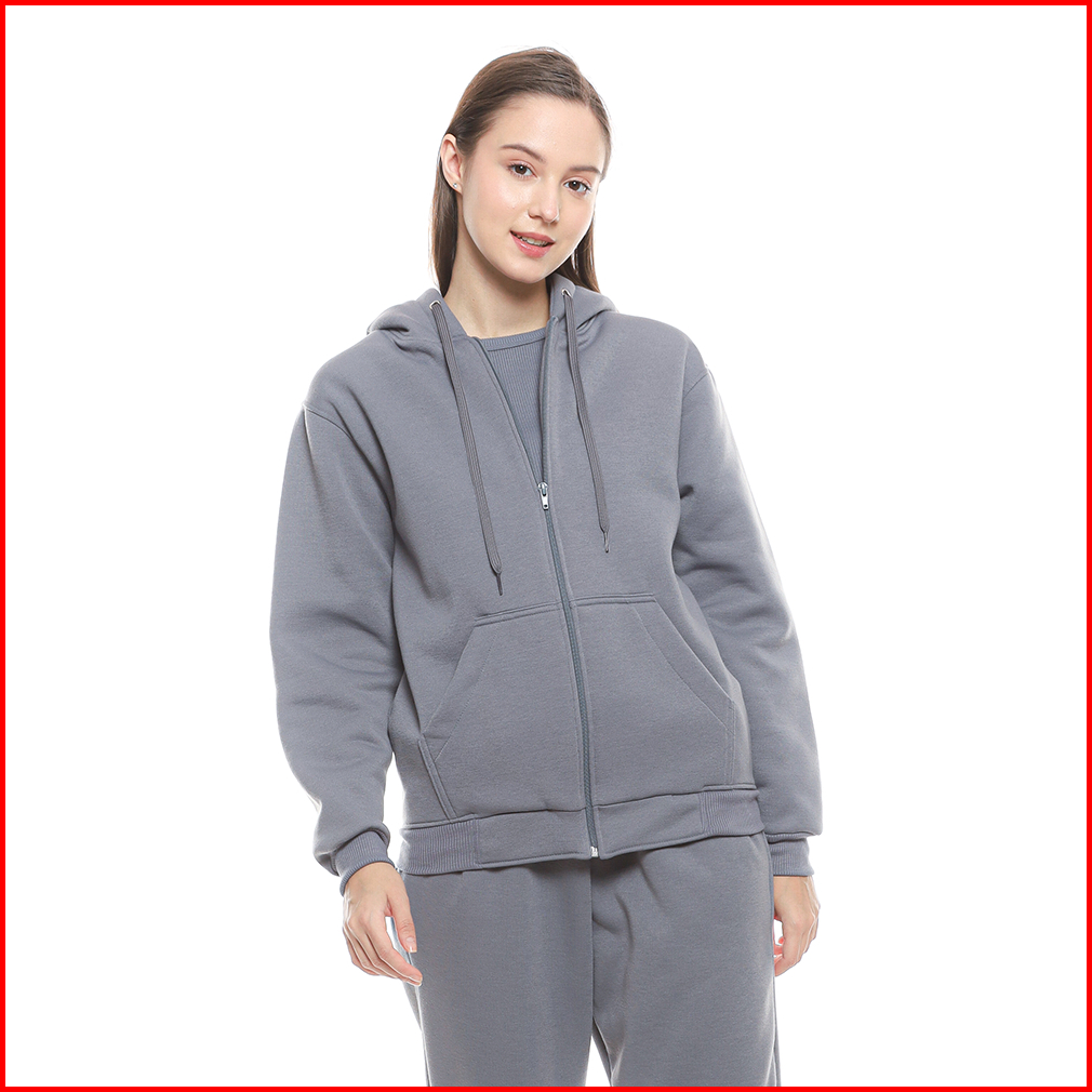 Hoodie Goodie Zipper Stone Grey Fleece Unisex