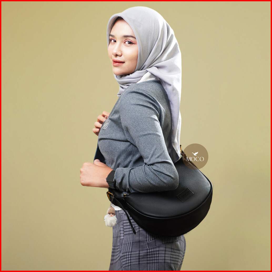 Nina Hobo Bagmoco Fashion Tas Selempang Wanita Crybaby Bag Charm Bulu Half Moon Sling Bag 2239