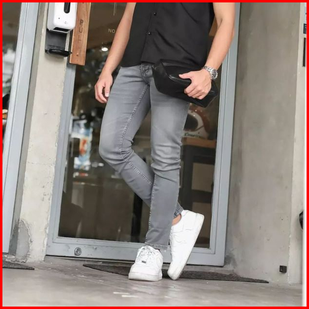 Celana Jeans Slimfit Pria Abu Stretch Keren