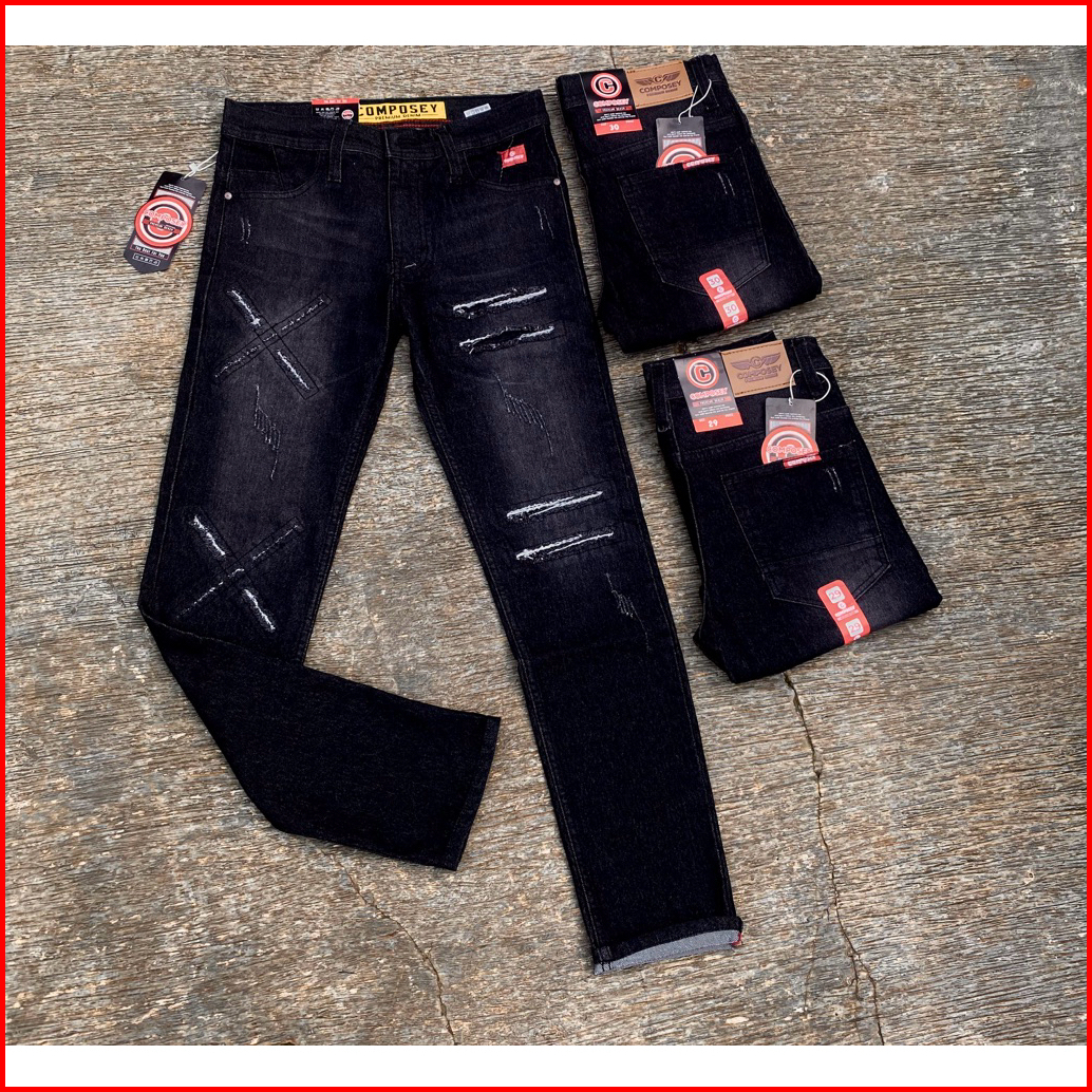 Celana Panjang Jeans Skiny Polos Black Wosh Celana Panjang Jeans Street Celana Panjang Jeans Denim Streecht Pria Cowok L