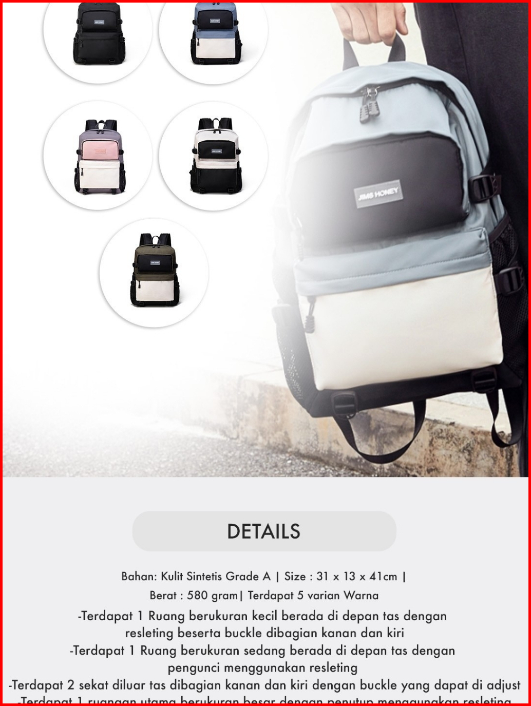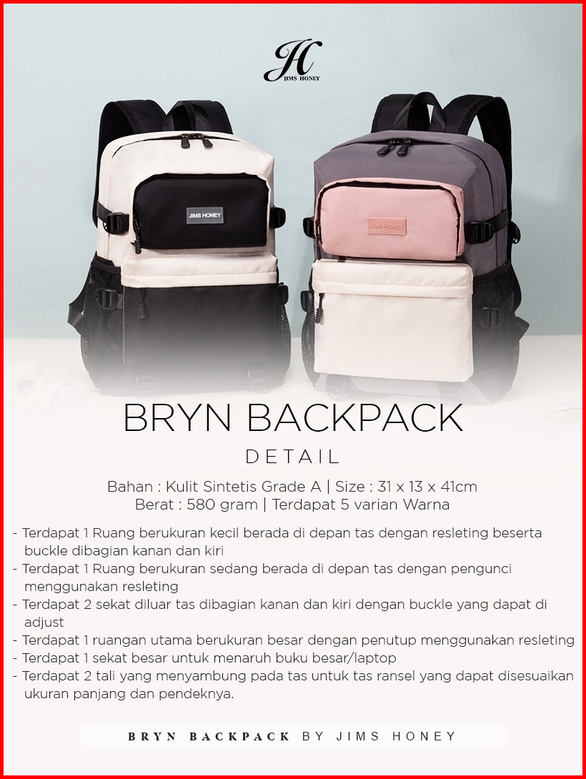 Jims Honey Bryn Backpack Original Tas Ransel Pria Wanita Realpic Store Tas Sekolah Gemblok Laptop Antiair