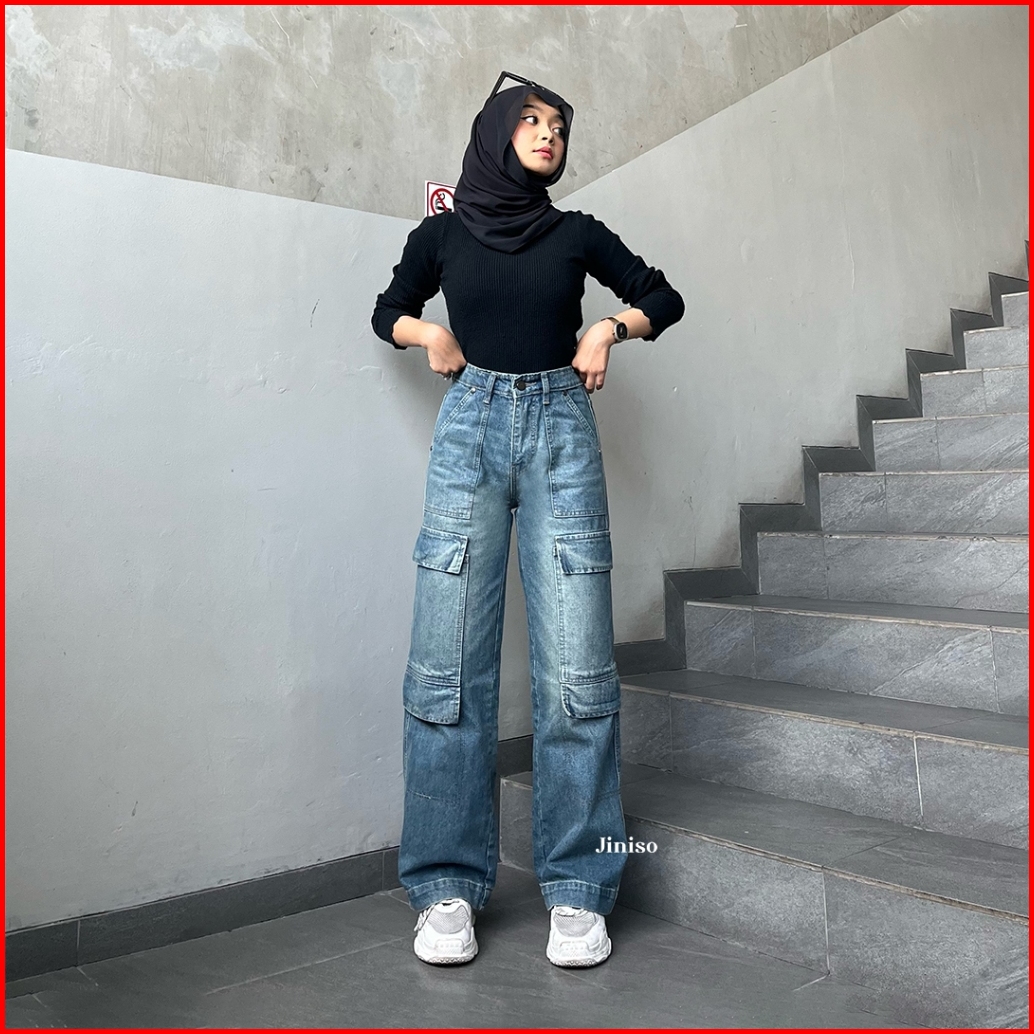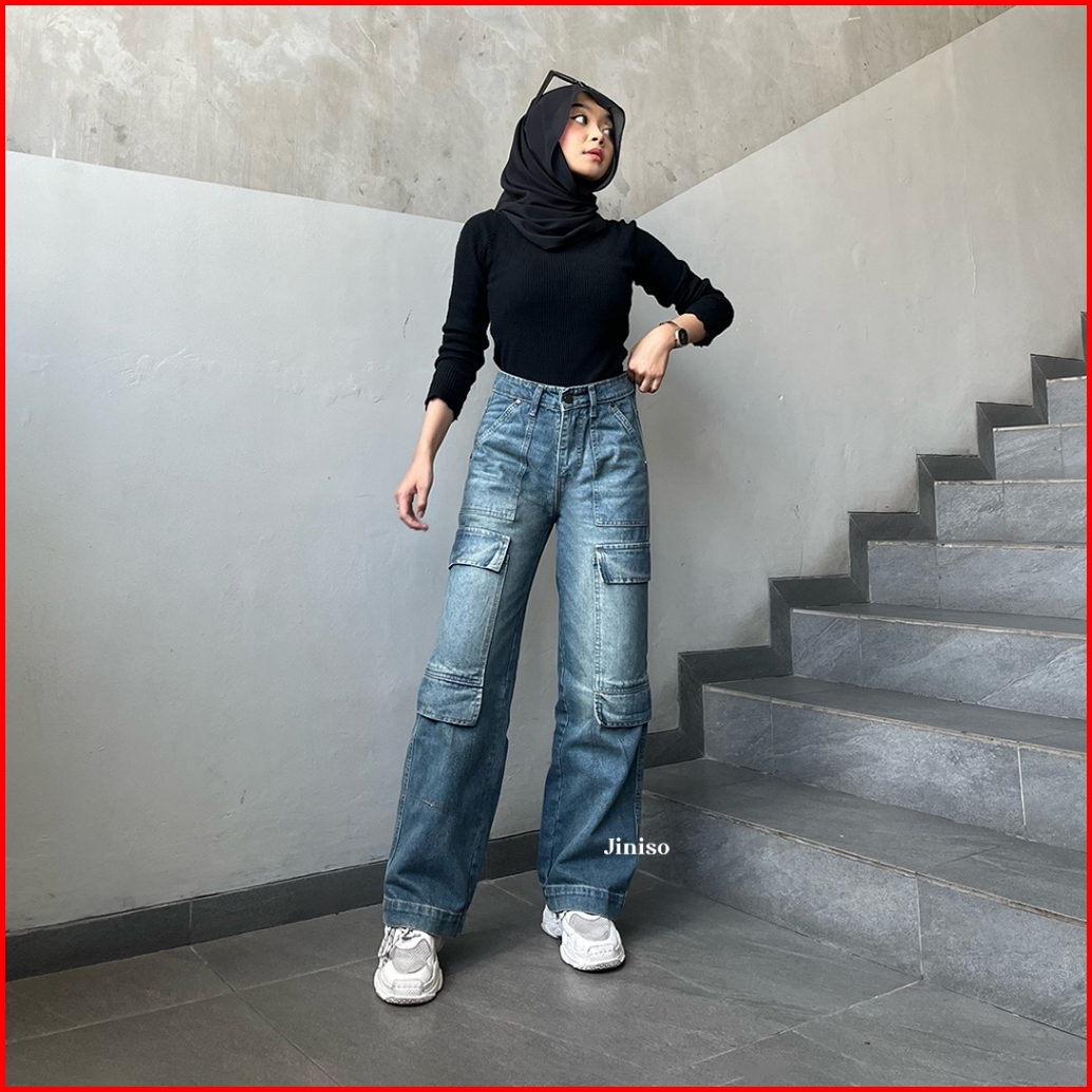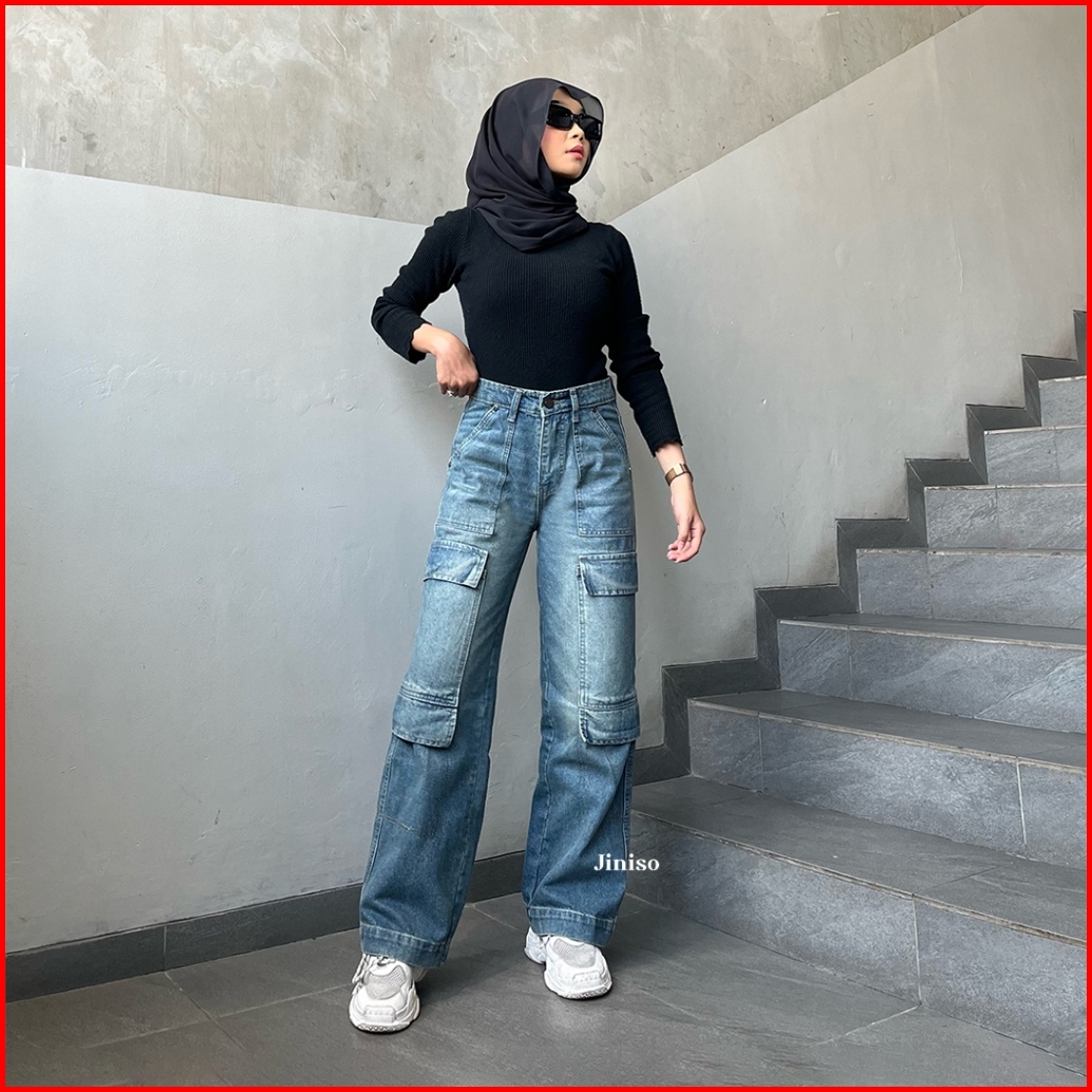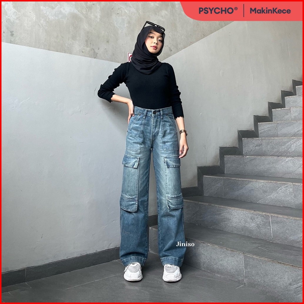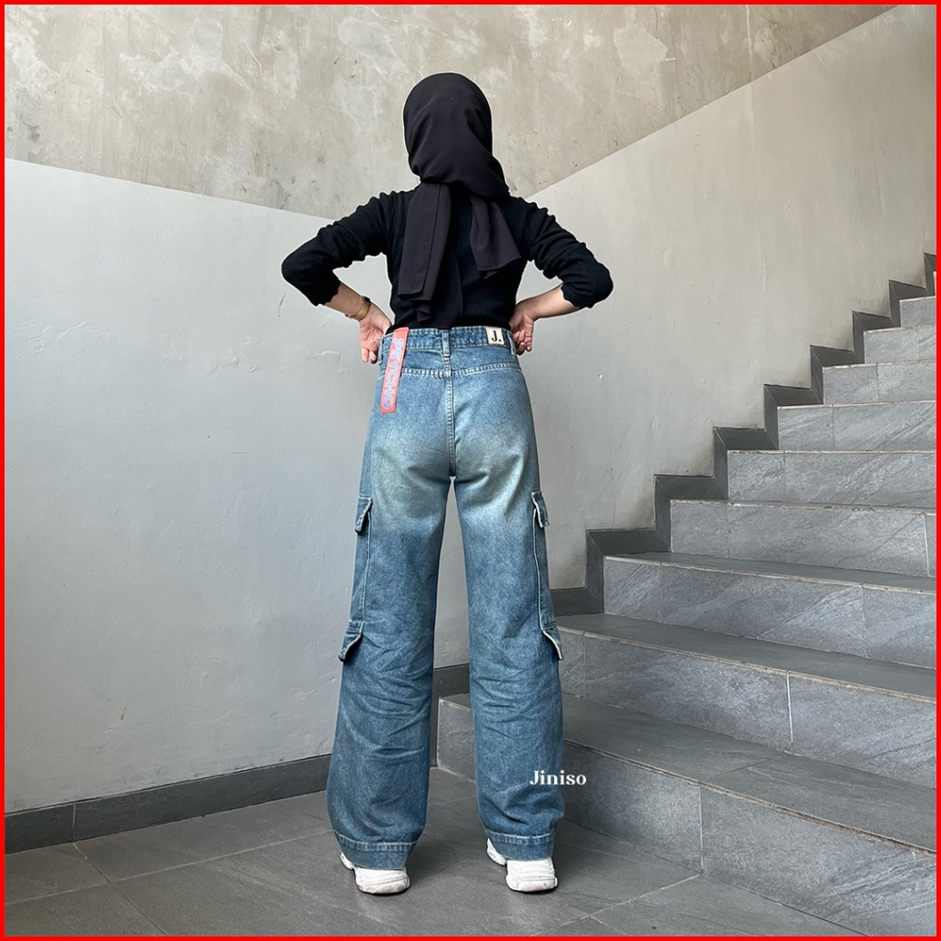 Jiniso - Highwaist Cargo Loose Jeans 555 Psycho