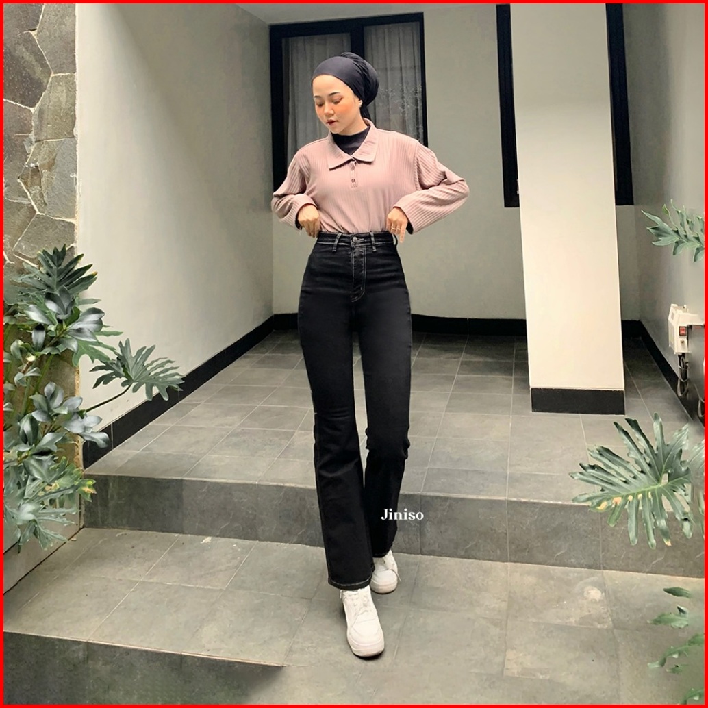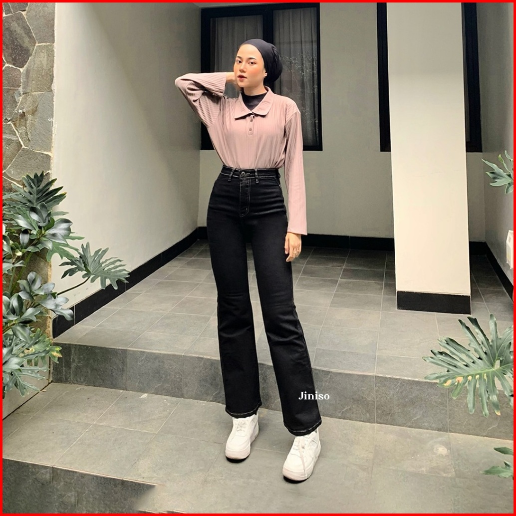Jiniso - Highwaist Stretch Cutbray Jeans 523 Hangout
