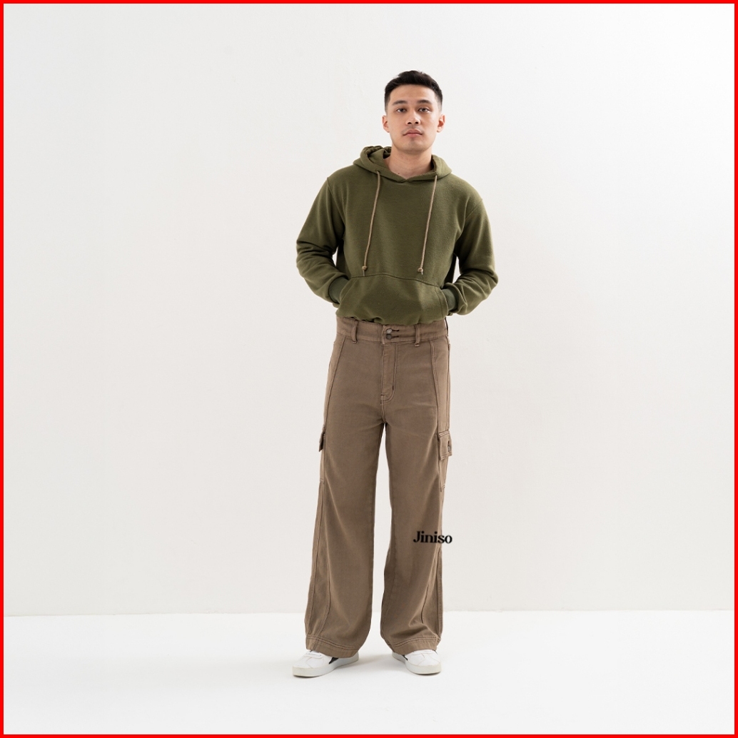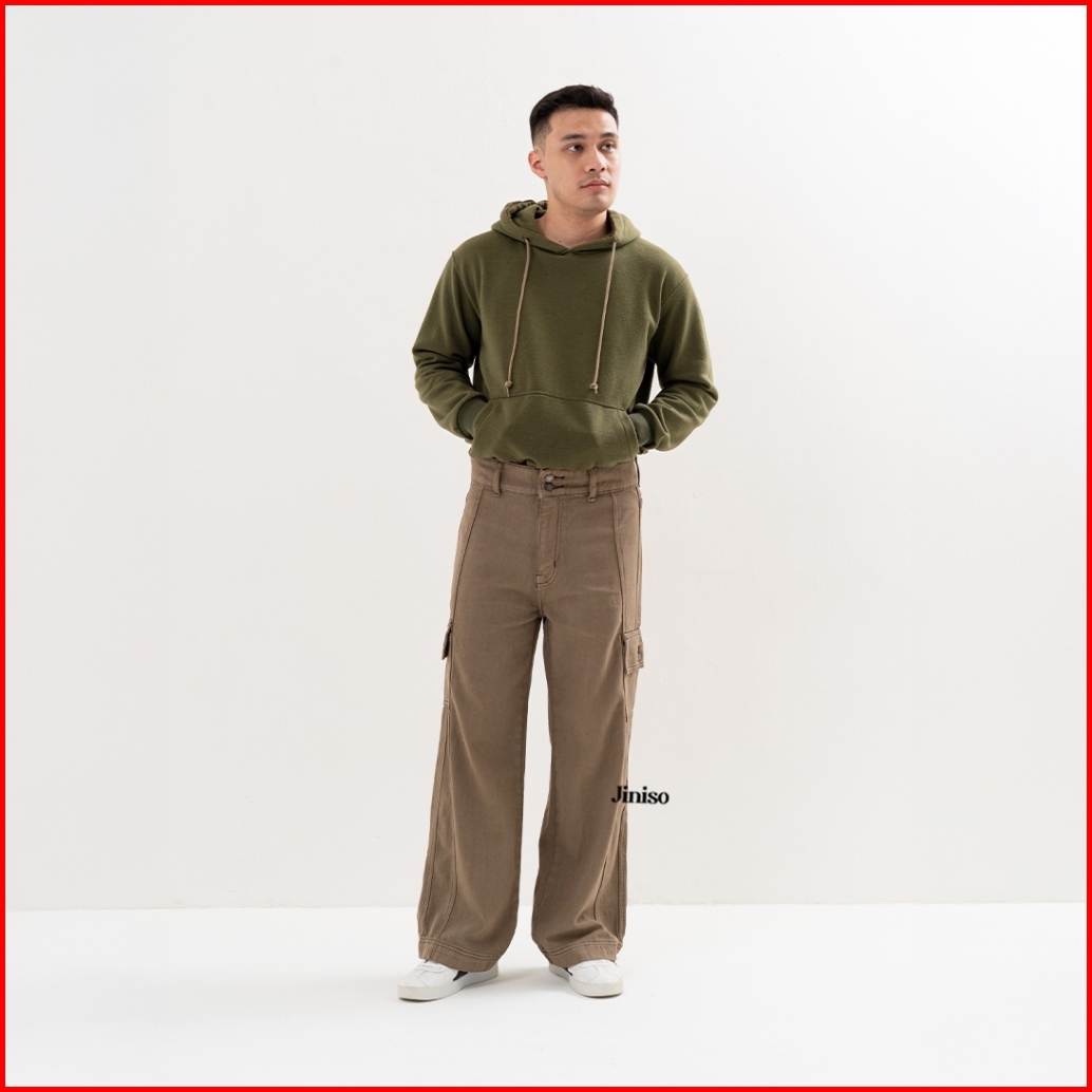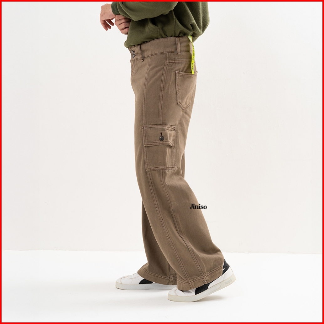 Jiniso Loose Cargo Denim Jeans Pria 401