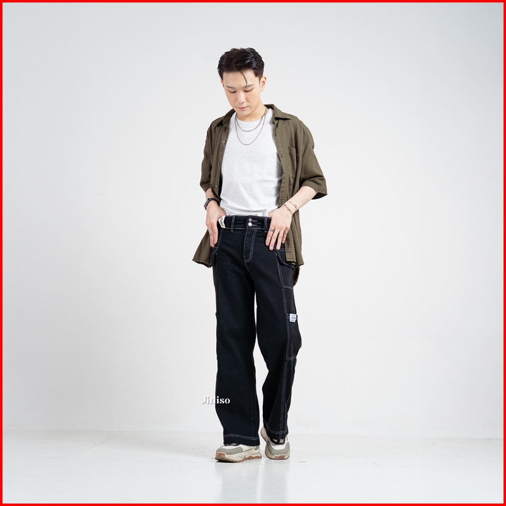 Jiniso Cargo Baggy Denim Jeans Pria 410