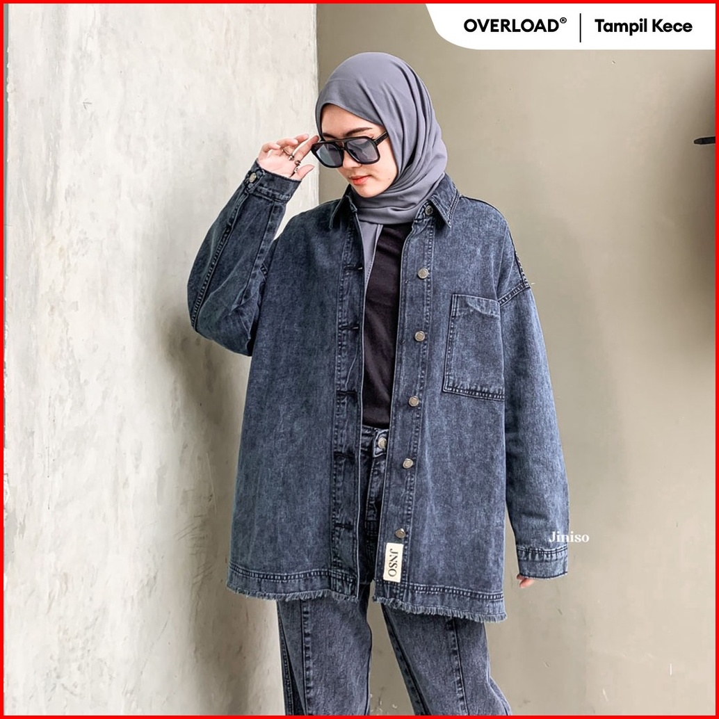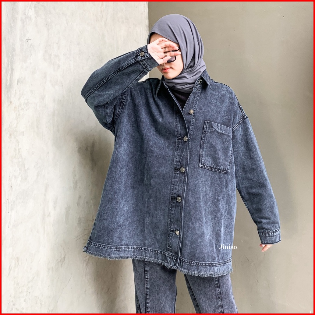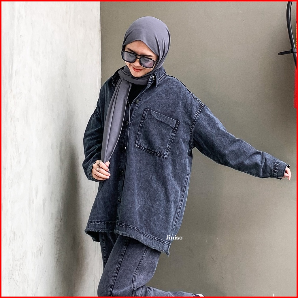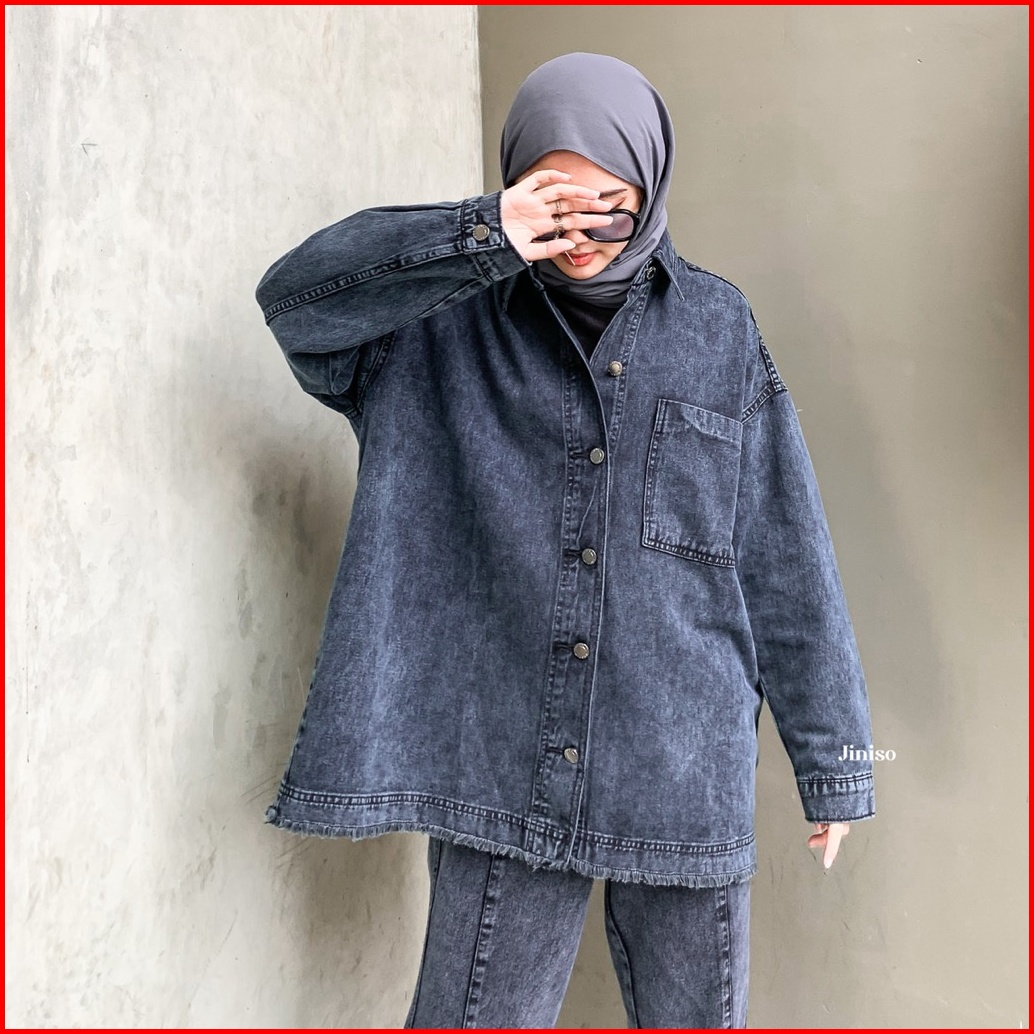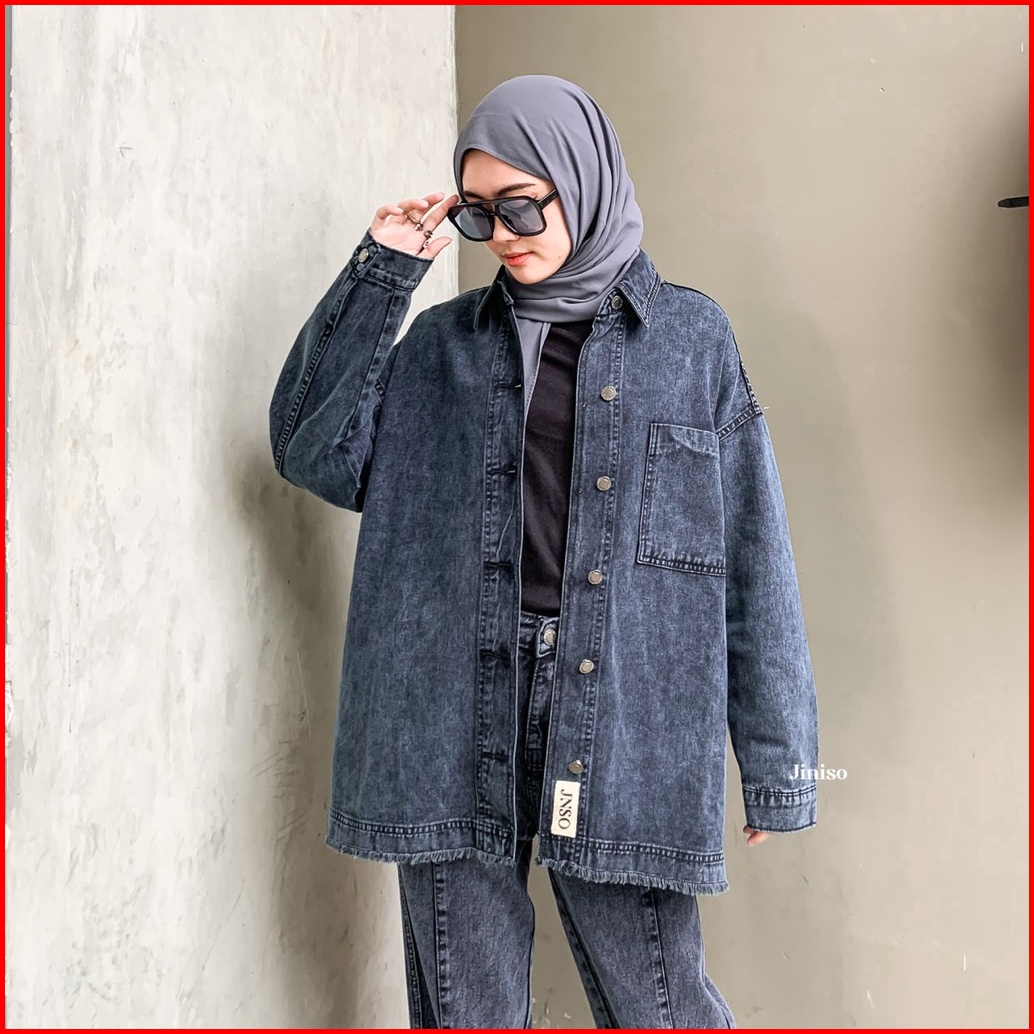 Jiniso Jaket Jeans Oversize Basic Pocket Black Acid