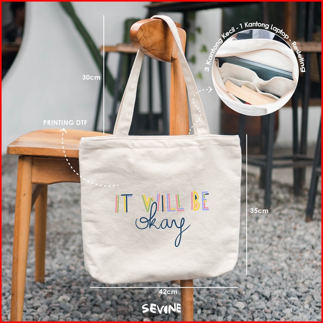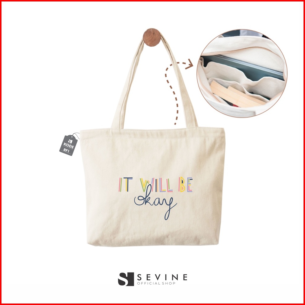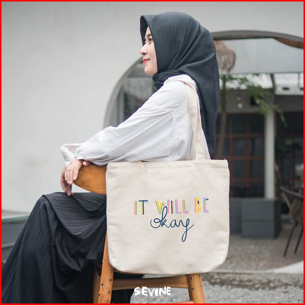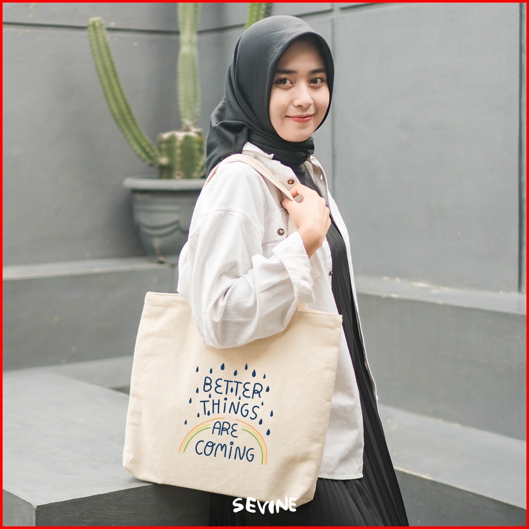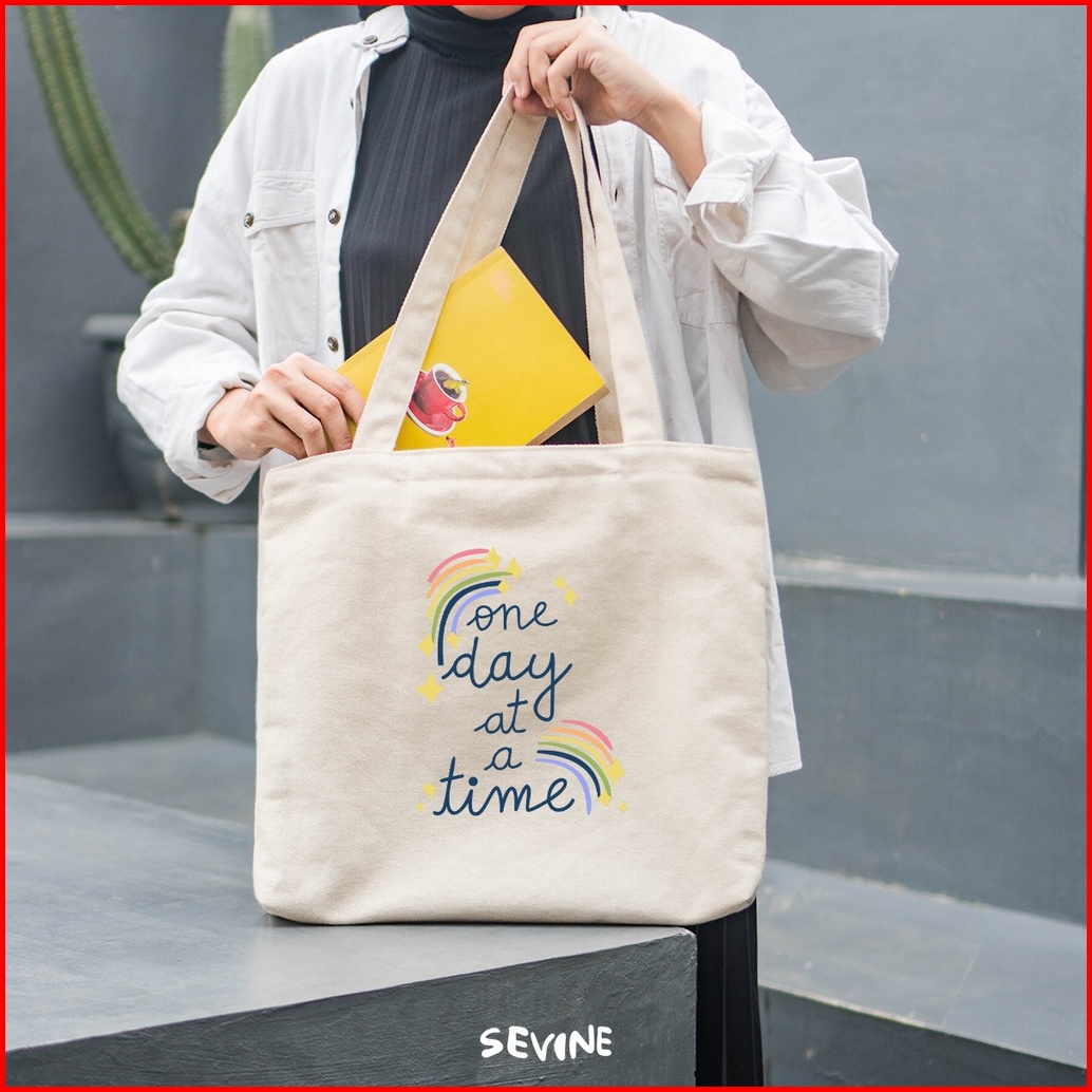 Sevine Tote Bag Kanvas Emily Resleting Kantong Tas Laptop Wanita Kuliah Sekolah Fashion Totebag Kerja Quotes Cute Rainbo