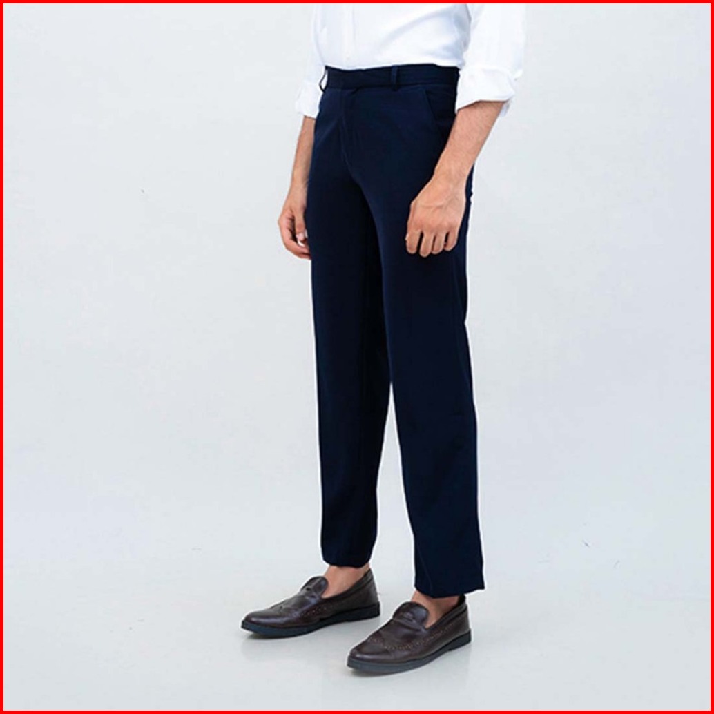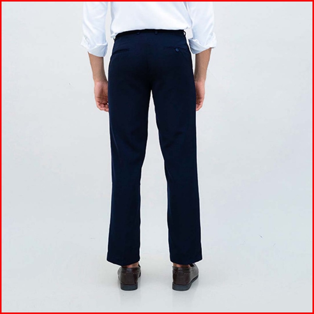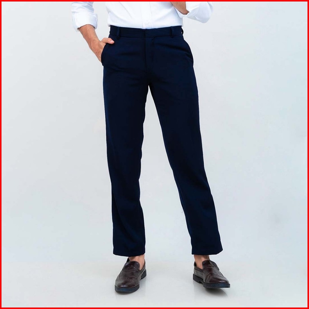 Celana Bahan Kerja Reguler Panjang Formal Lurus Bukan Slim Fit Navy