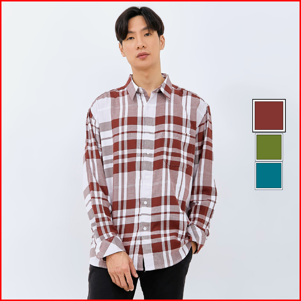 M231 Kemeja Pria Flannel Oversized Panjang 0081
