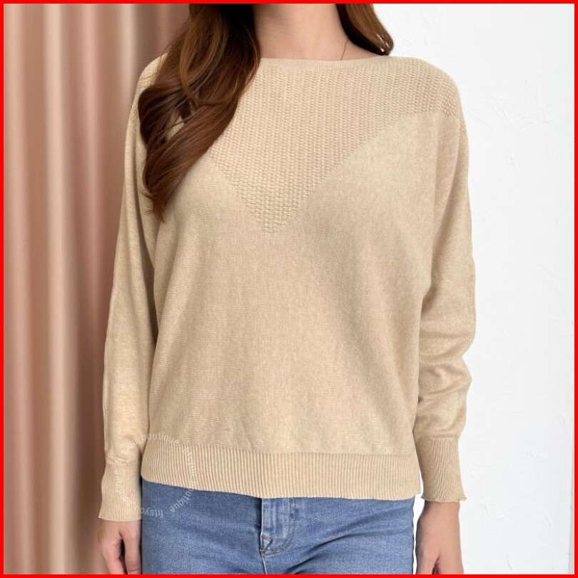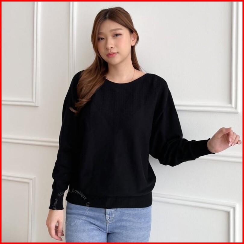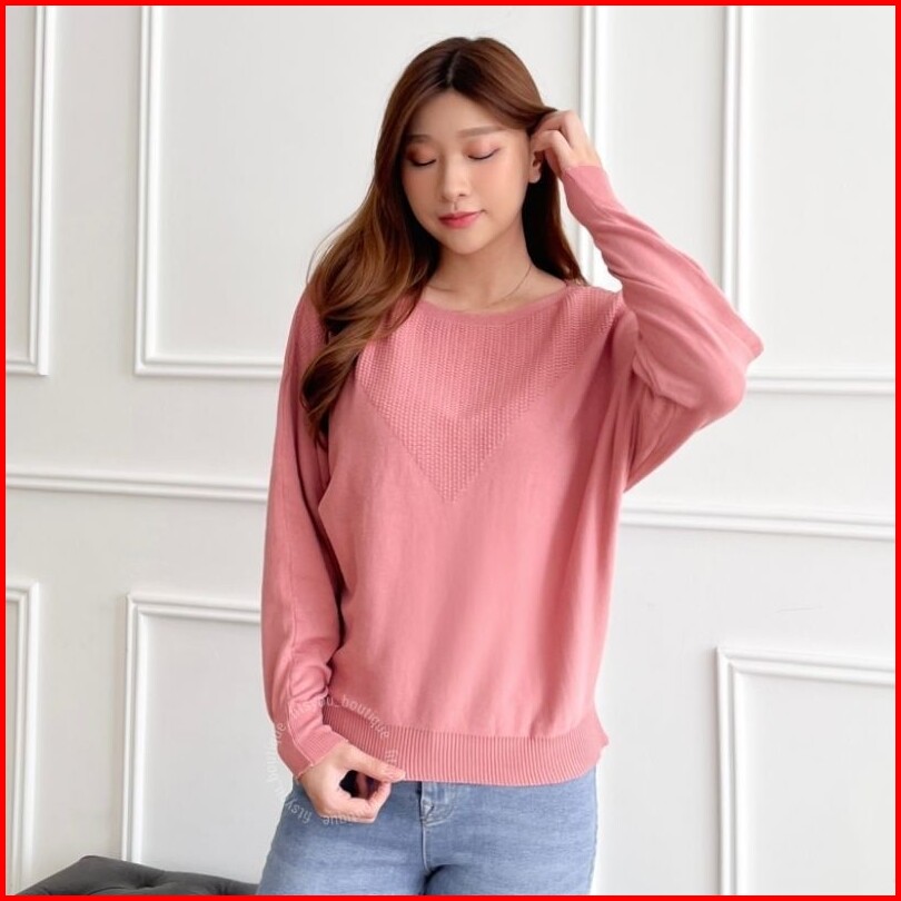 Kei Knit Tops Atasan Rajut Katun Halus Adem Tangan Panjang Sweater Cewe Hijab Friendly Batwing