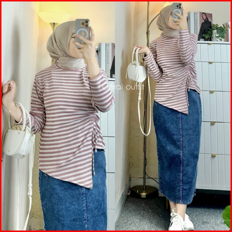 Loly Blouse Salur Serut Knit Misty Warna Beragam