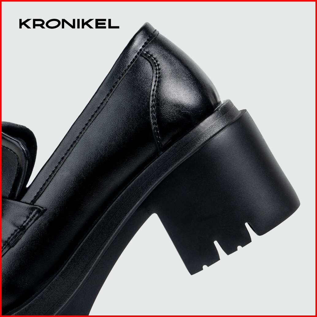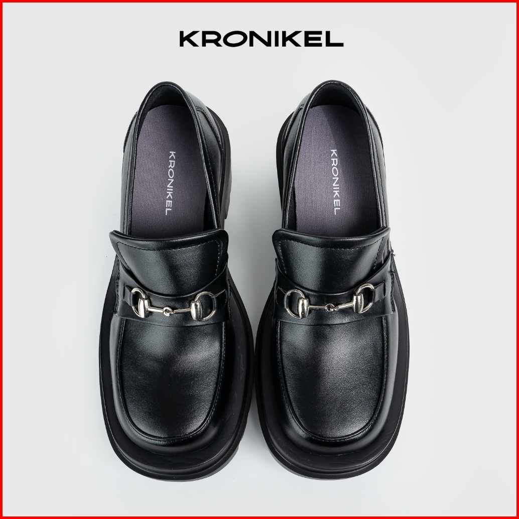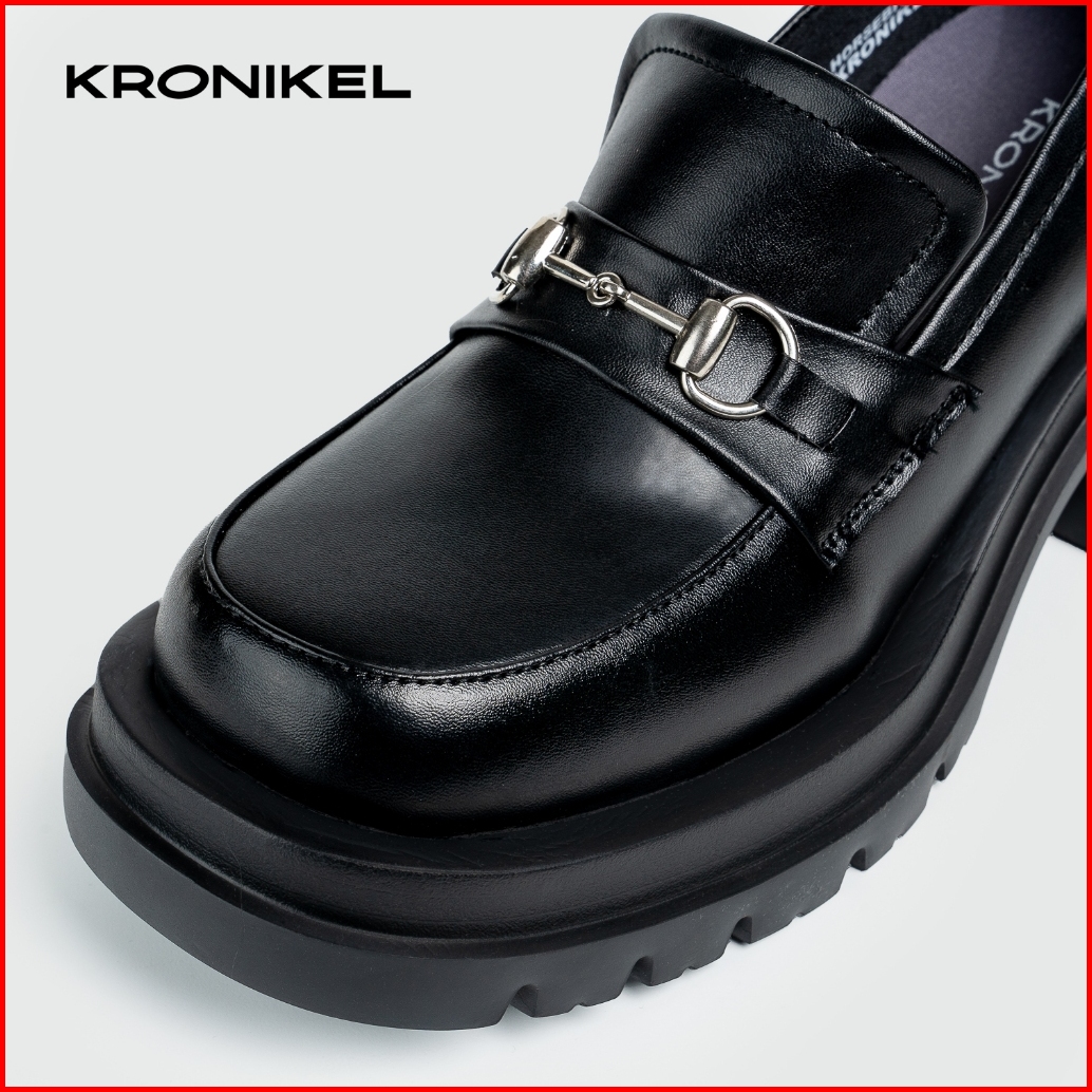 Kronikel Horsebit Loafers Sepatu Klasik Tinggi Wanita Kasual Concert Shoes Hitam Black