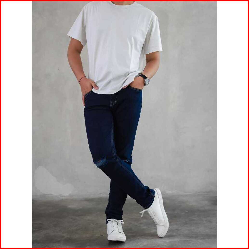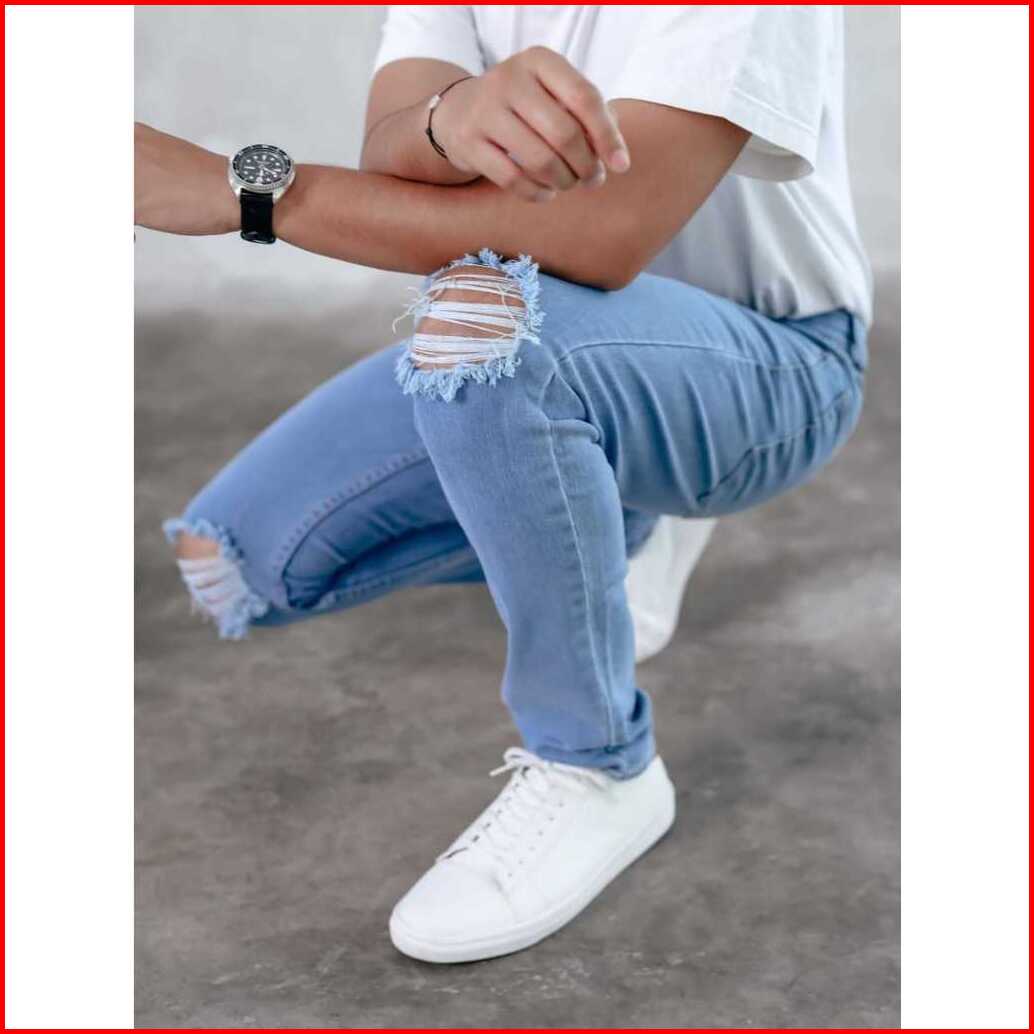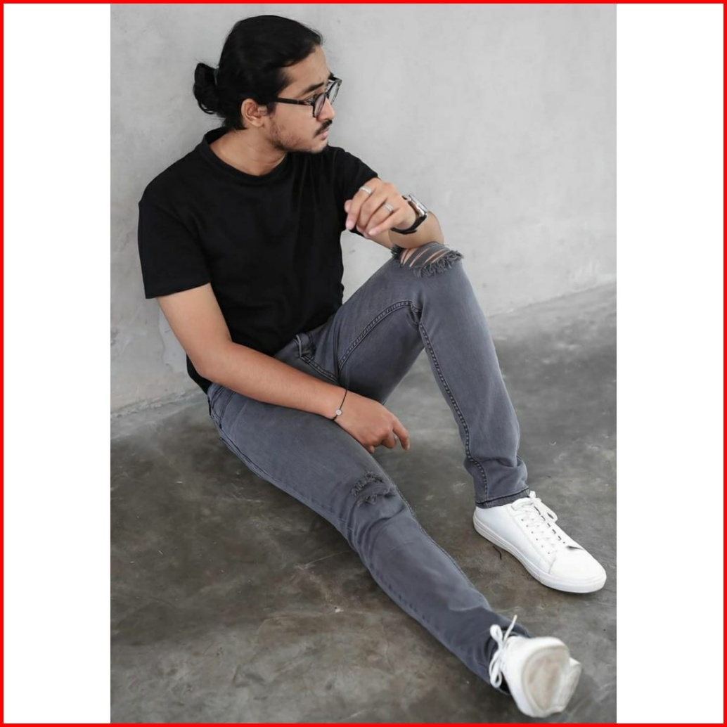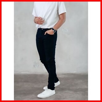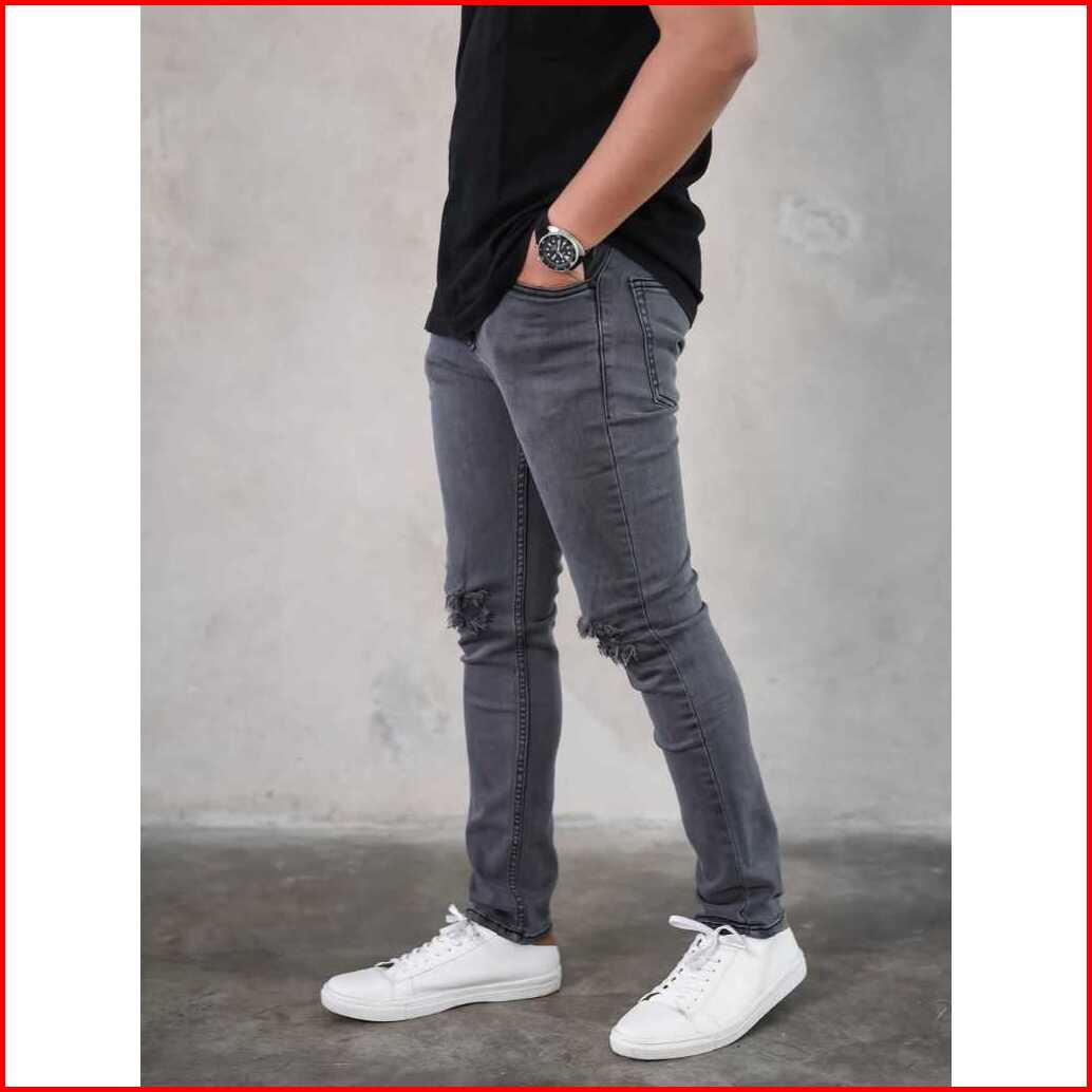 Celana Jeans Panjang Pria Sobek Lutut Slimfit Hitam Ripped Soft Denim Stretch Skinny Size 27-38