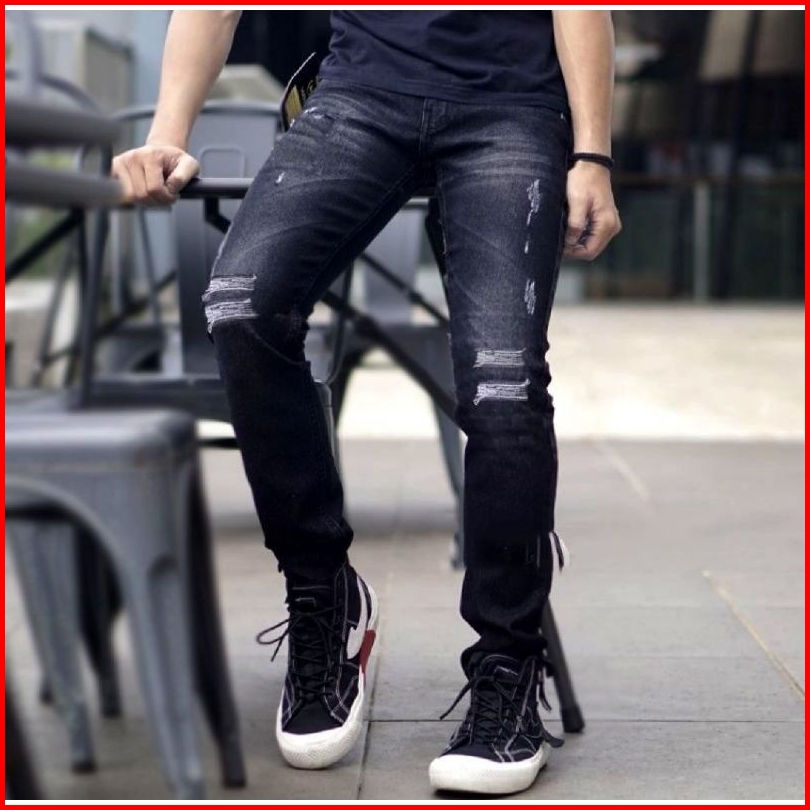 Jeans Black Editions Manrock Dn1171 Strecth Long Pant Celana Jeans Sobek Pria Black Viper Apparel Skinny Slimfit