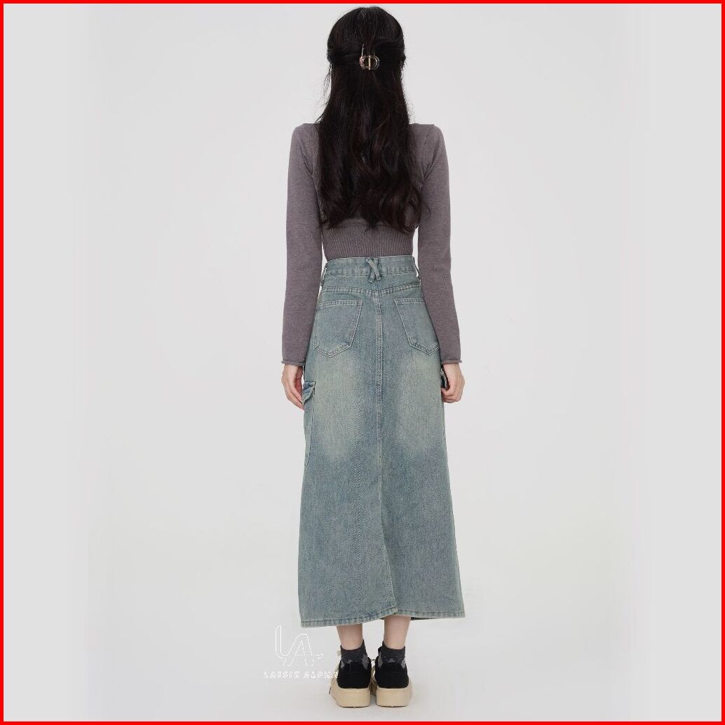 Special Lassie Alpha J65 Rok Panjang Denim Wanita Rok Biru Muda Antik Casual Rok