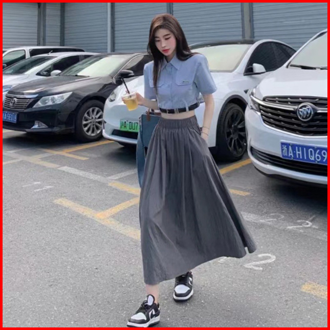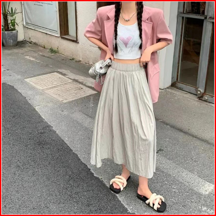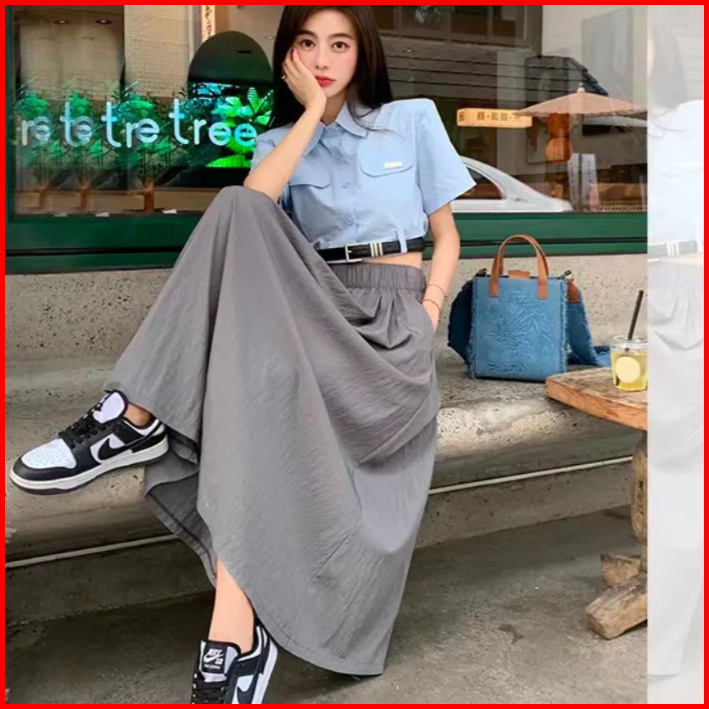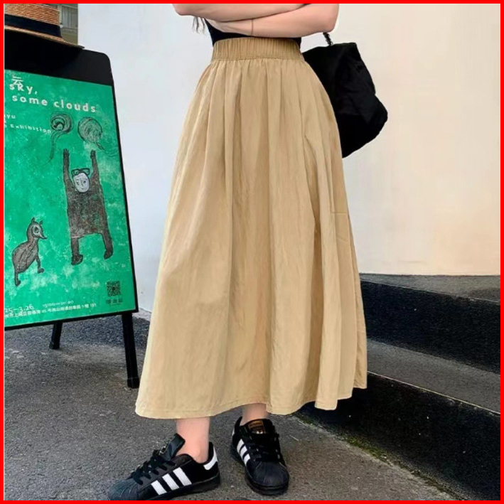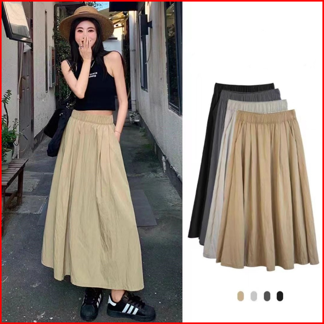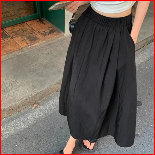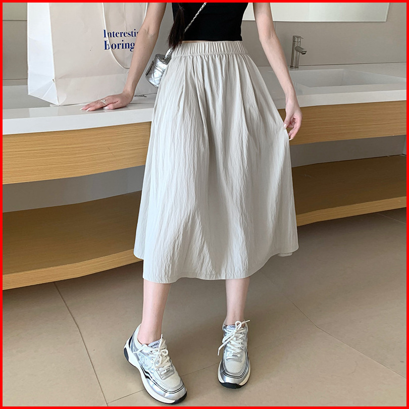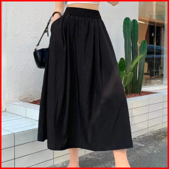 Loose Women Casual Skirt A Line Plain With Pockets 2959