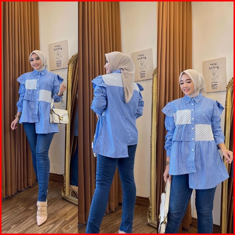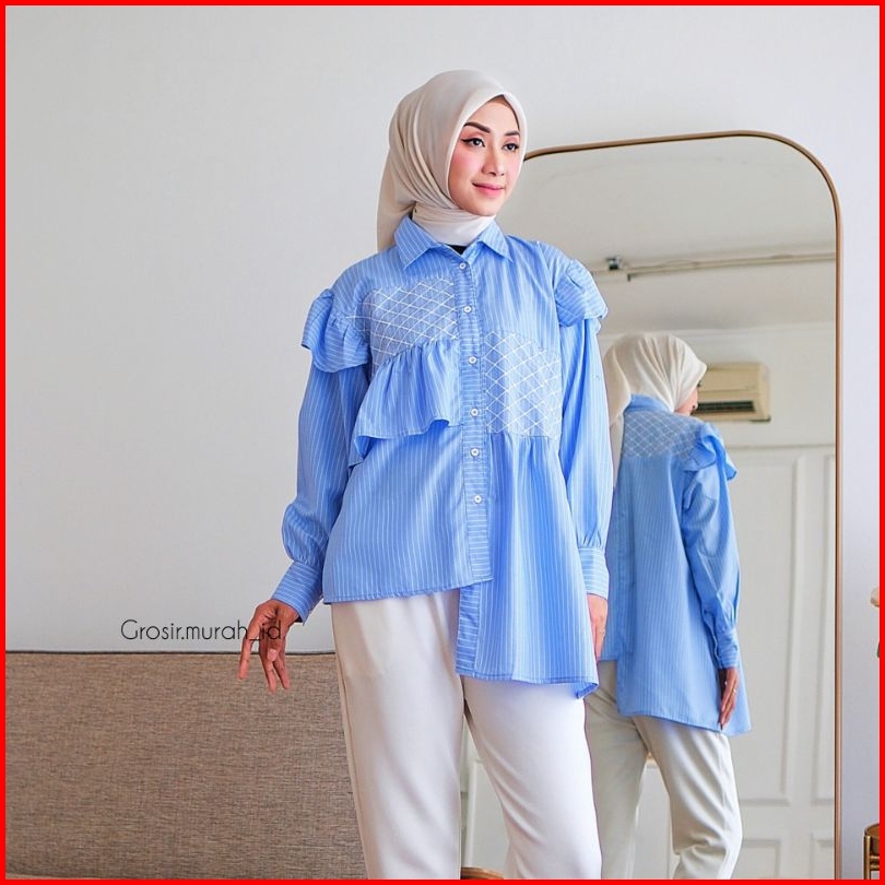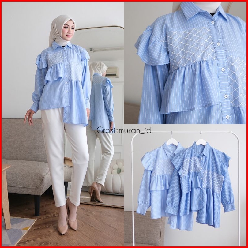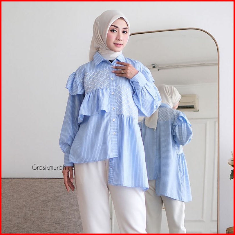 Azka Blouse Salur Katun Bruklat Berkerah M-xl