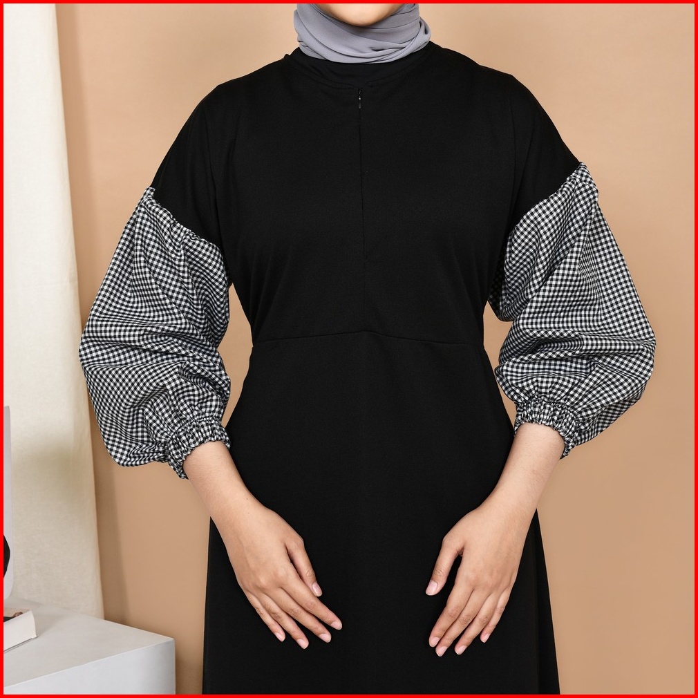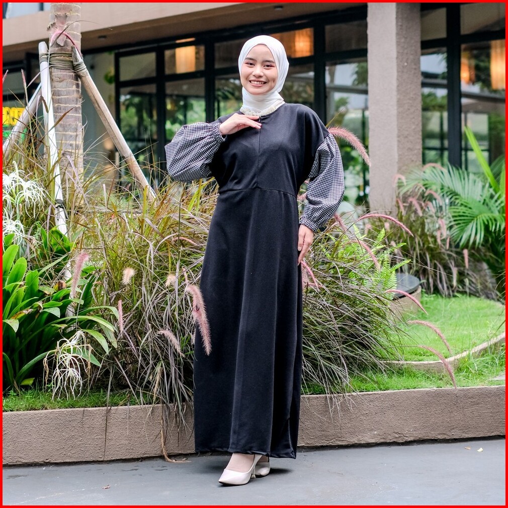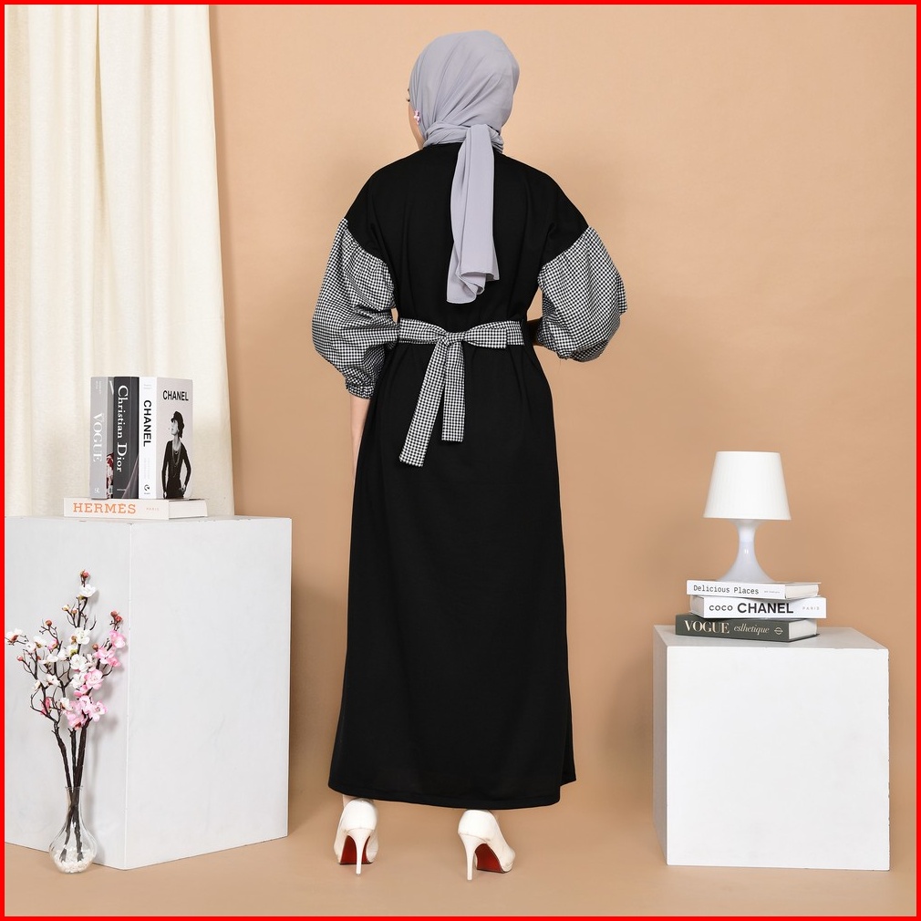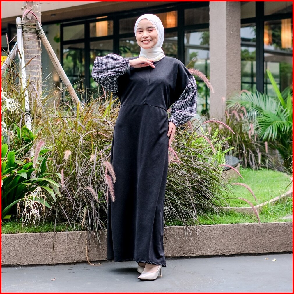 Mybamus Sena Mix Square Dress Black M15928 R21s1 - Gamis Big Size Busui Gamis Lebaran 2025