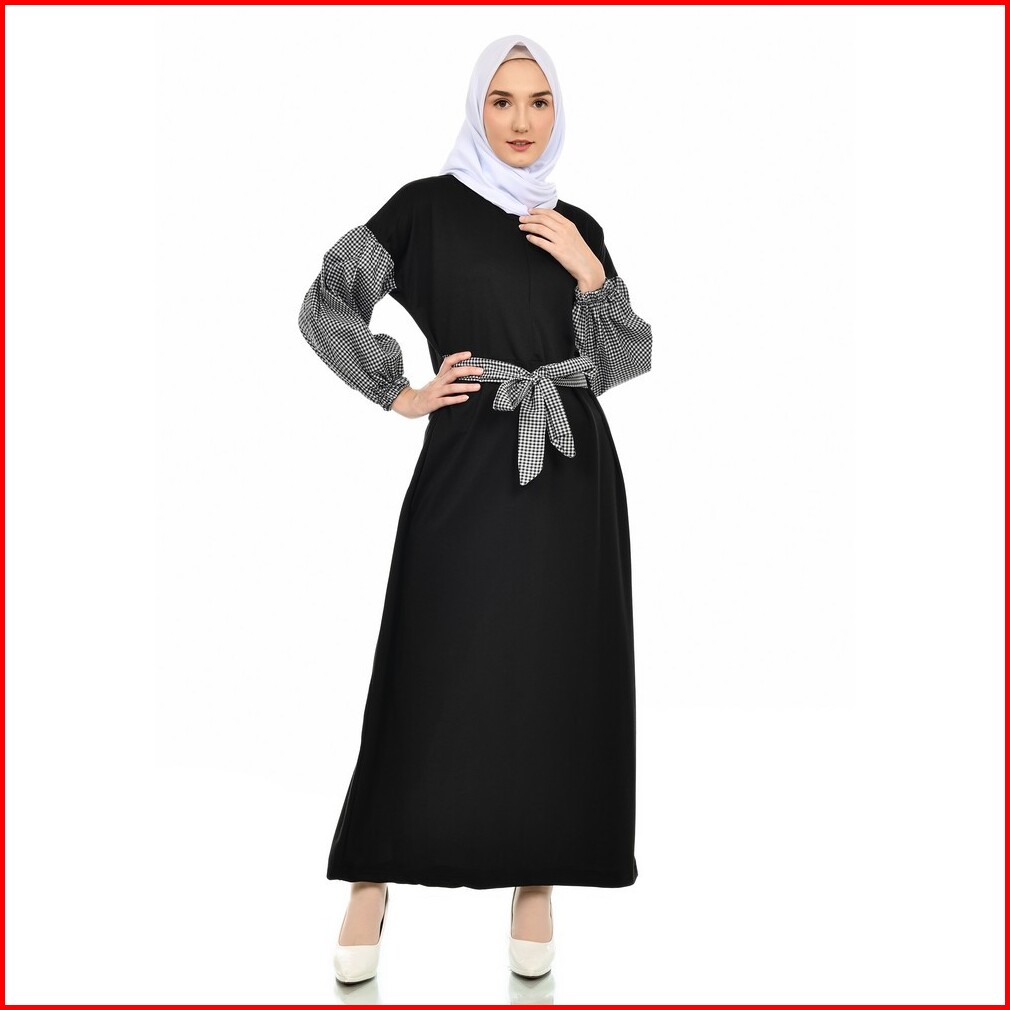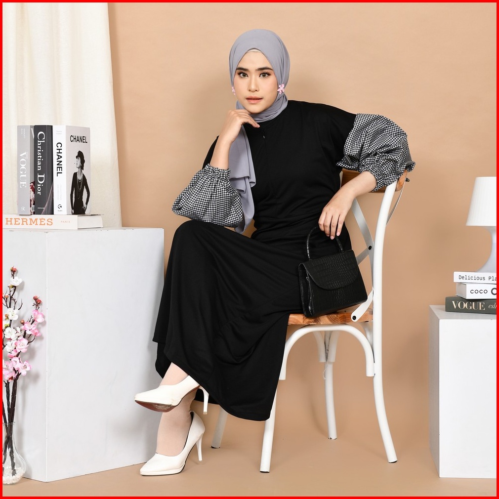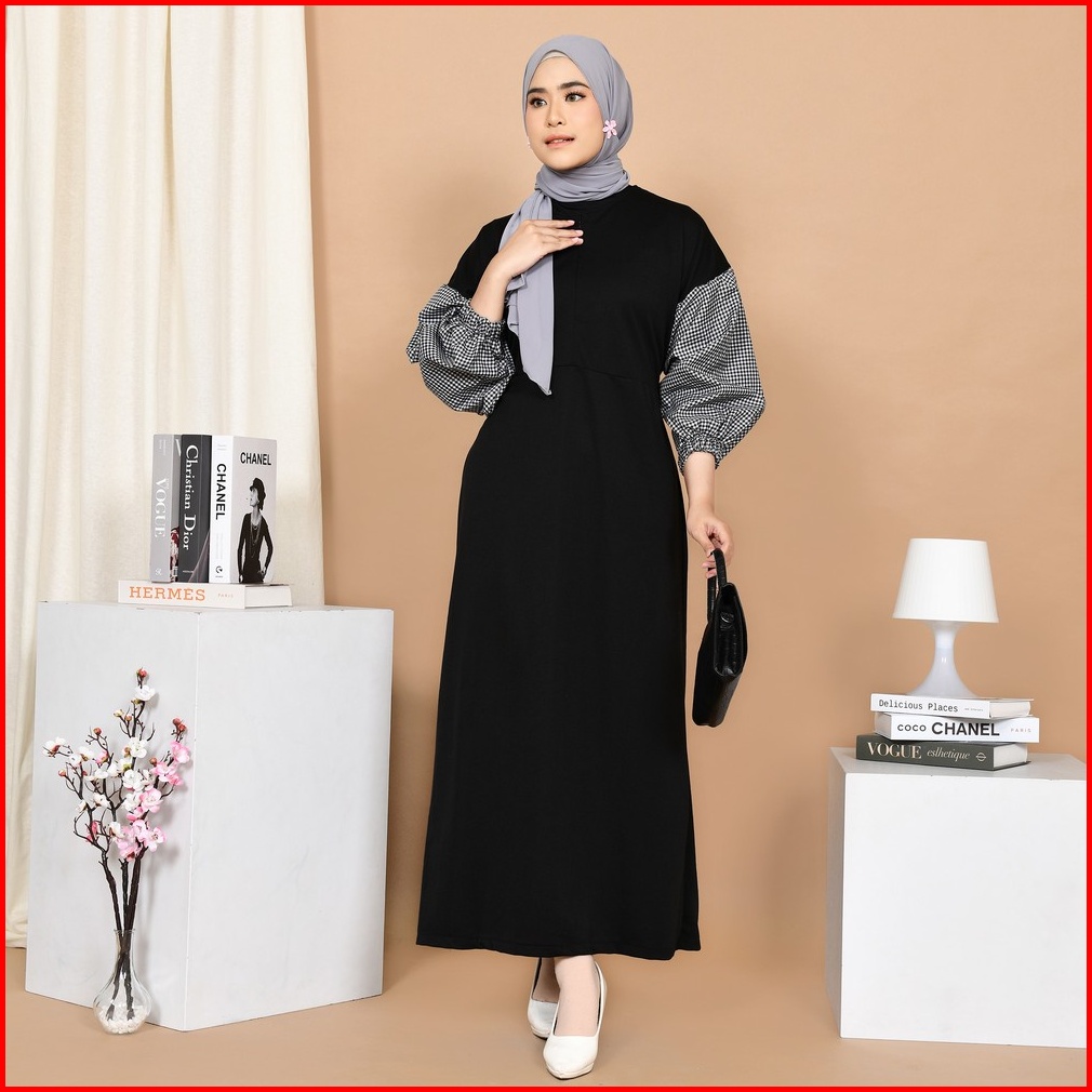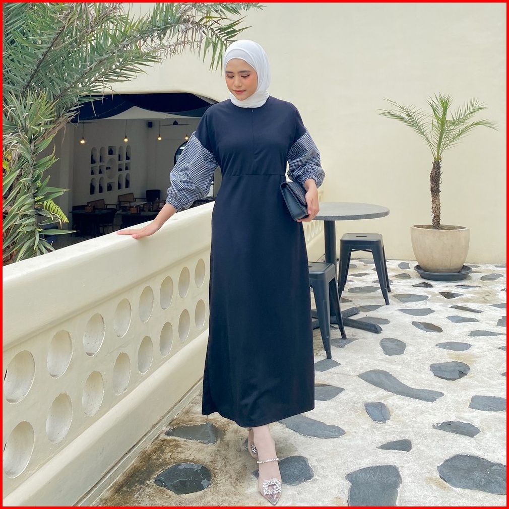 Mybamus Sena Mix Square Dress Black M15928 R21s1 - Gamis Big Size Busui Gamis Lebaran 2025