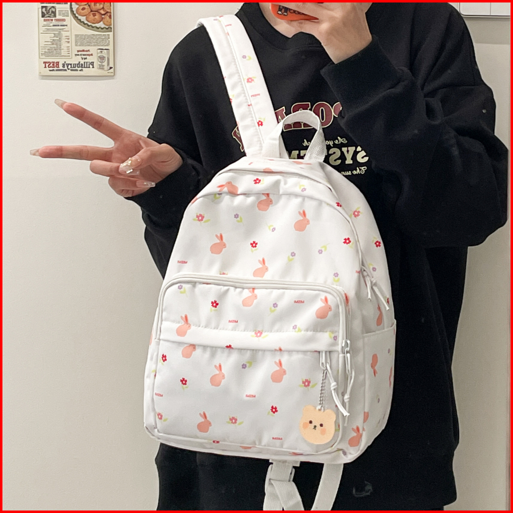 Mismi Nina Bag Tas Ransel Wanita Korean Style Flower Bunny Medium Backpack Sekolah Perempuan Stylish - 36n