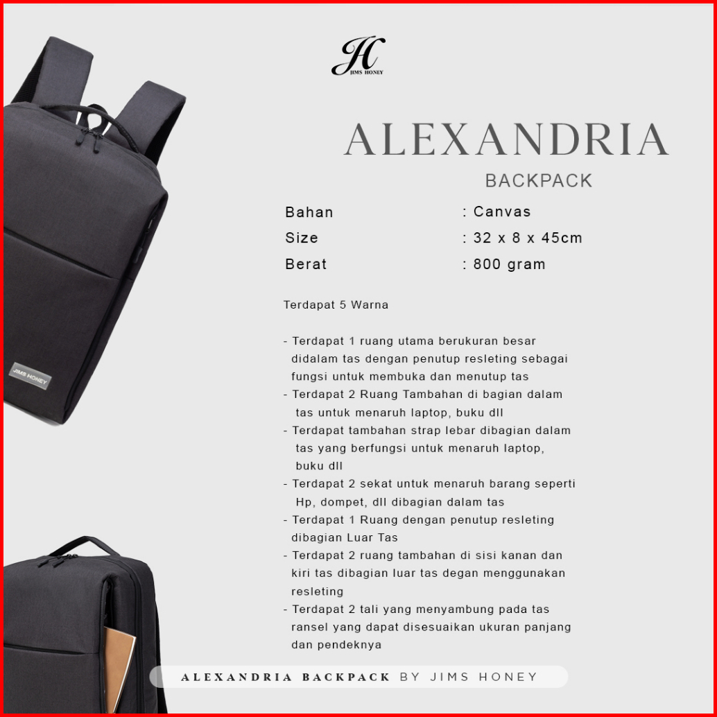 Jims Honey - Alexandria Backpack - Tas Ransel Unisex