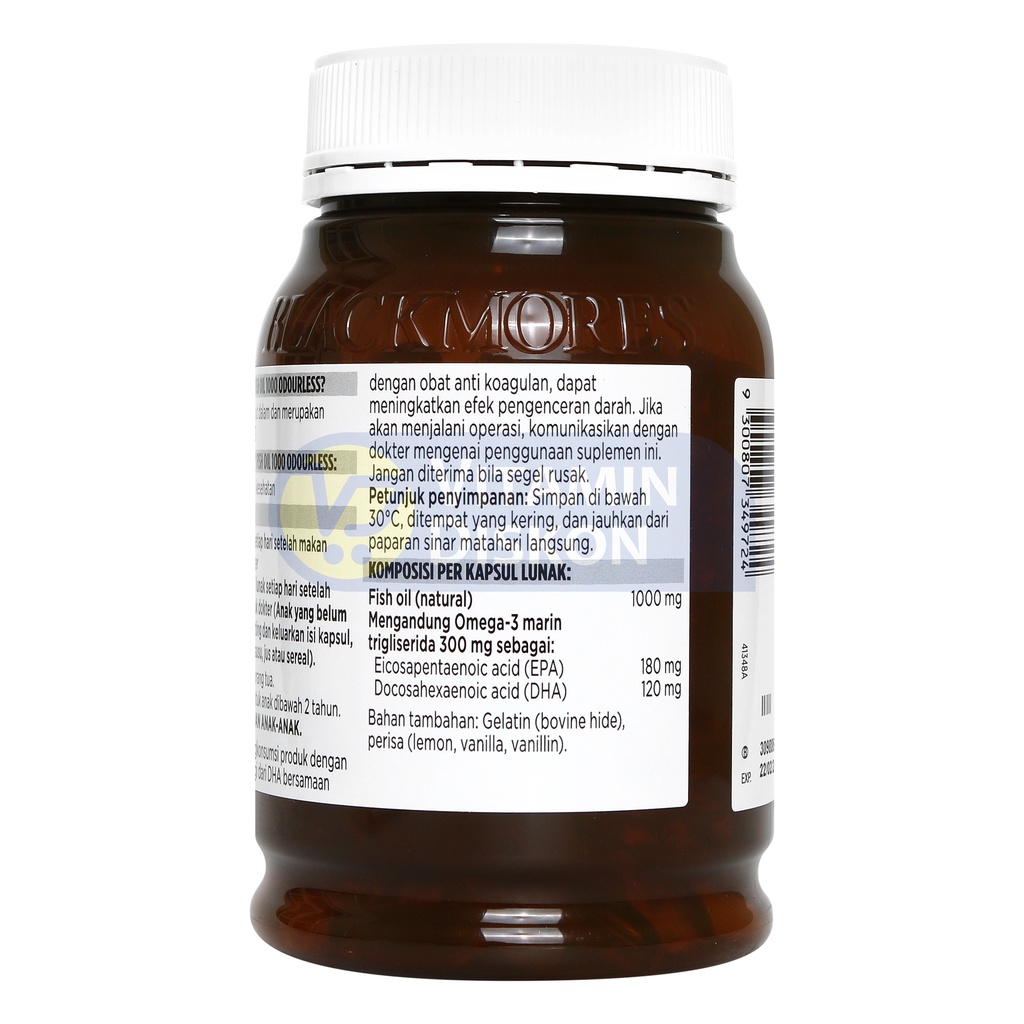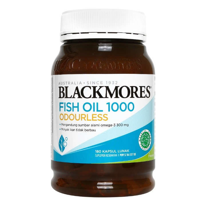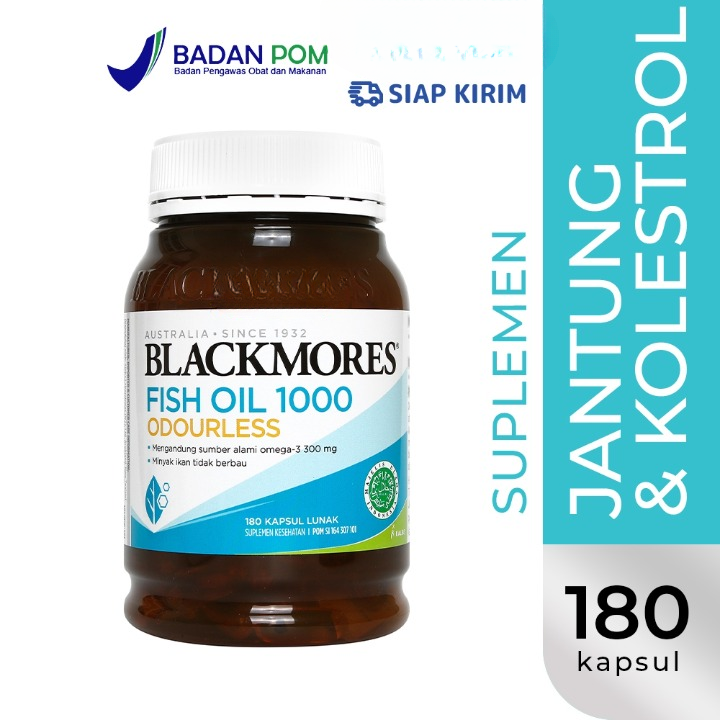 Blackmores Odourless Fish Oil 1000 BPOM Kalbe 180 Caps | Suplemen Omega 3 Pelihara Kesehatan Jantung