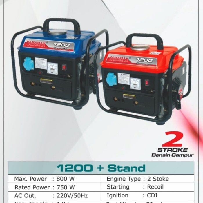 SUKMANAH MESIN GENSET 2 TAK GENERATOR BENSIN 750 WATT YAMAMAX PRO 1200