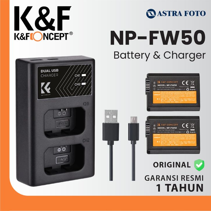 KNF K&F Concept Battery Sony NP-FW50 2PCS + Dual Slot Charger NPFW50 - Battery Charger