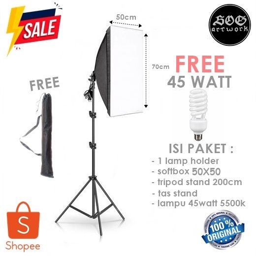 Paket Lighting Studio Foto Softbox Light Stand 45watt vlog youtube