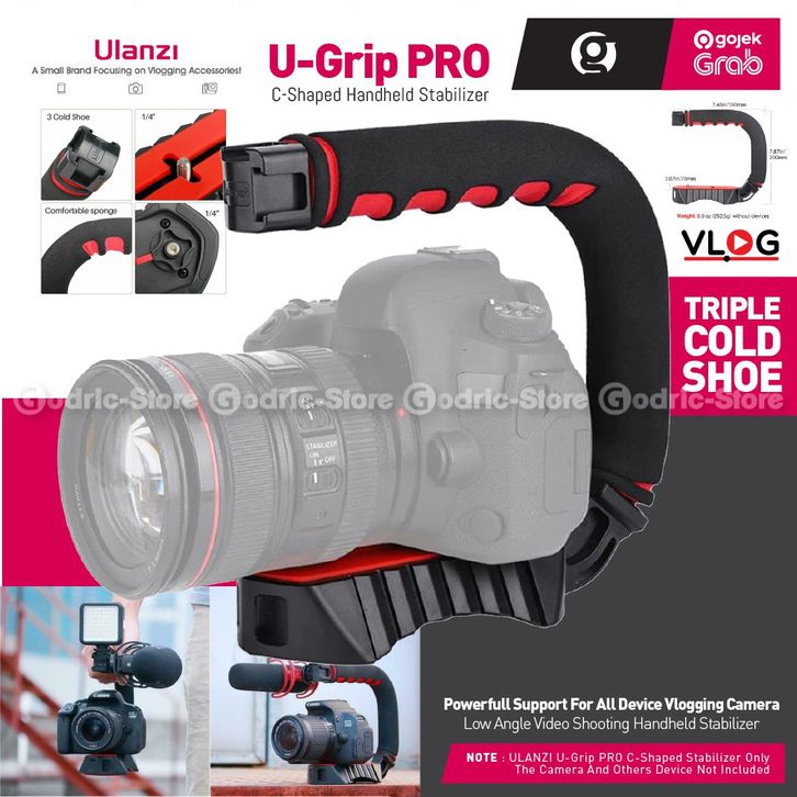 ULANZI U-Grip Pro 3-Shoe Mount9rip Video Rig Stabilizer for DSLR / Smartphone HP / Action Camera