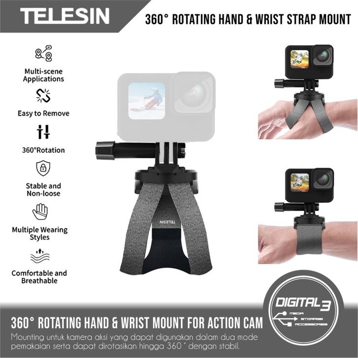Telesin Mounting 360° Rotating Hand Wrist Strap Gelang Gopro Insta360