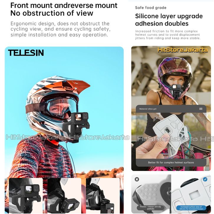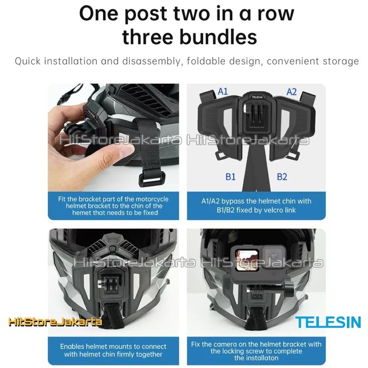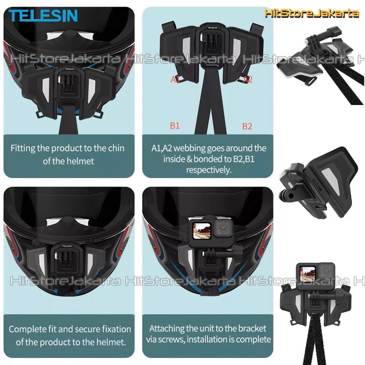 Telesin Motovlog Helmet Chin Mount For GoPro Insta360 Akaso Osmo Action Cam Helm Strap Mounting Helm Dagu