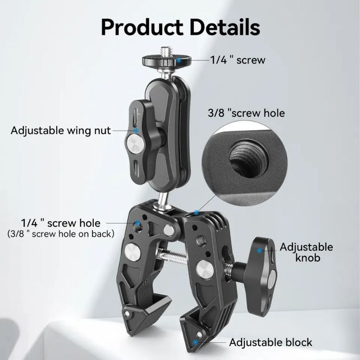 TELESIN SUPER CLAMP MAGIC ARM 360 multifunctional for GoPro , insta360 , action cam & smartphone