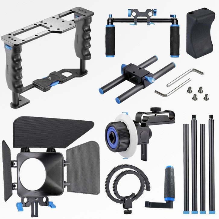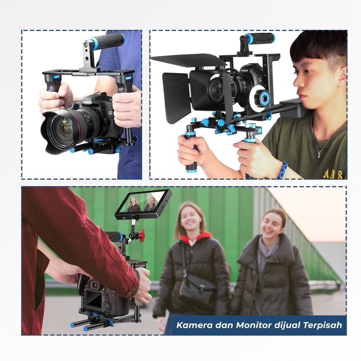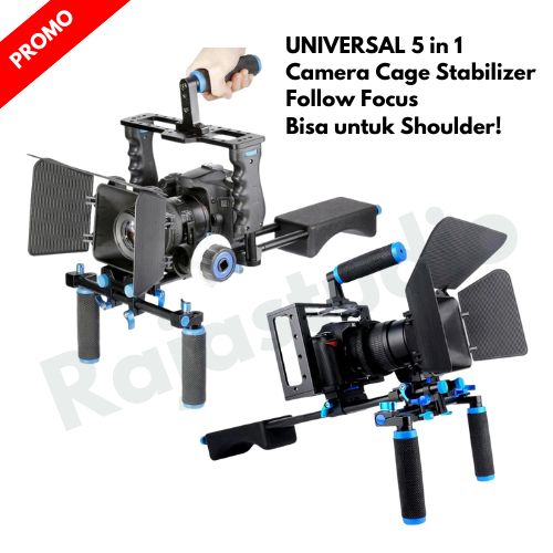 Universal Stable Gimbal handle Cage Rig Videography Fullset Kamera DSLR 5 in 1 Stabilizer + Shoulder Support + Follow F