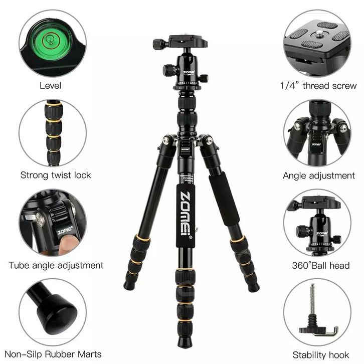 ZOMEI Q666 TriP00D MonoP00D Aluminum Alloy for Kamera DSLR Mirrorless with 360 Degree Ball Head