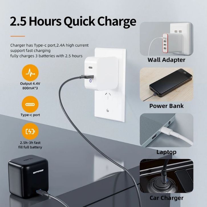 Baterai aja, Charger + 1 baterai, Charger + 2 baterai, Charger aja