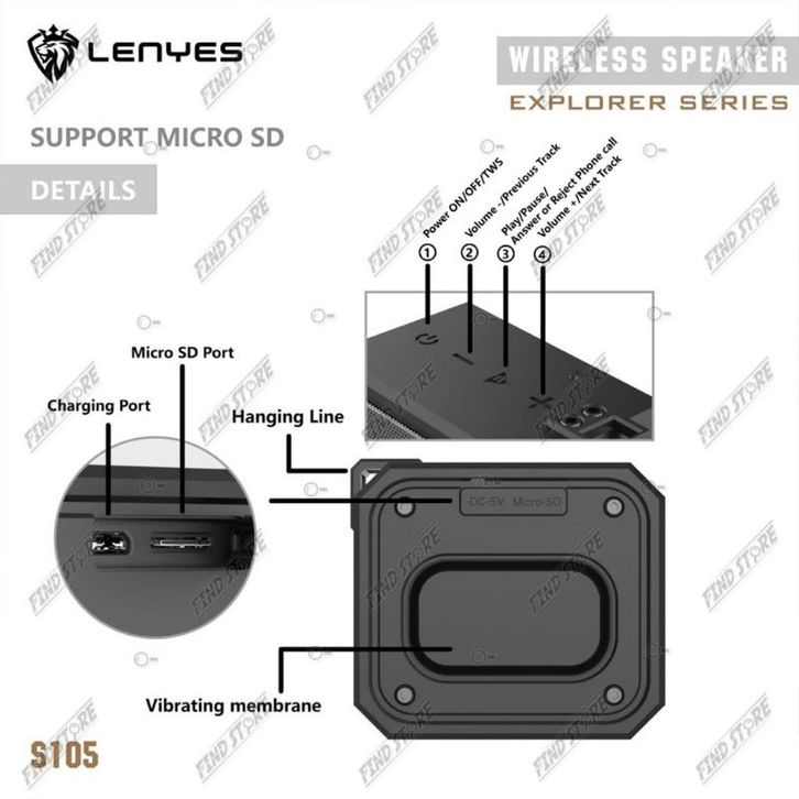 Speakers LENYES S105 – Bluetooth Portable, Waterproof & Anti Banting