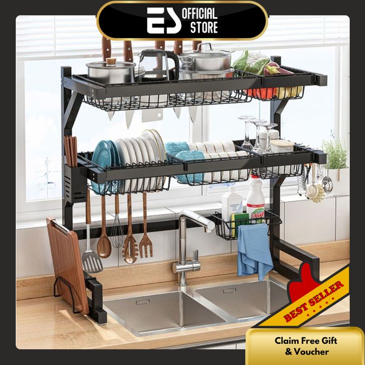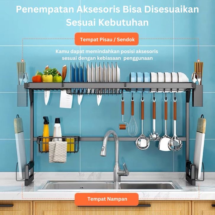 Rak Piring Wastafel Stainless Steel Rak Cuci Piring Dapur Rak Penyimpanan Piring
