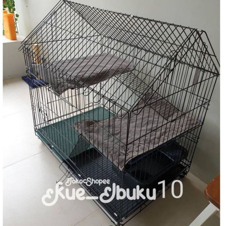Kandang Kucing 2 Tingkat Atap Rumah Besi Lipat 60x45x65 cm Real Pict