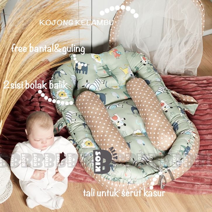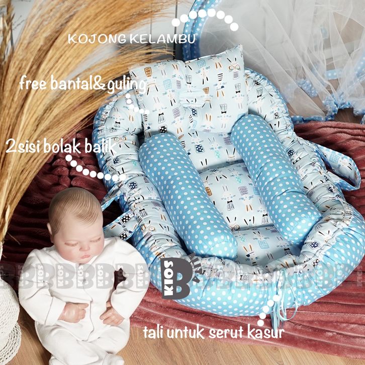 KASUR BAYI BABY NEST PREMIUM DENGAN KELAMBU + FREE BANTAL PEYANG DAN GULING BAYI (BISA 2 SISI MOTIF BOLAK BALIK)