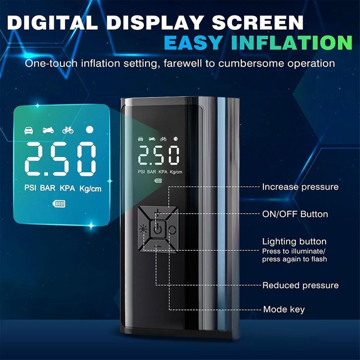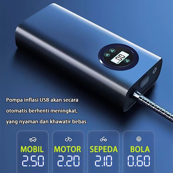 Pompa Ban Mobil Sepeda Motor Elektrik Cek Tekanan Angin Listrik Car Air Pump Tire Inflator Portabel