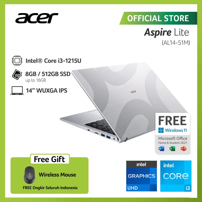 ACER ASPIRE LITE AL14-51M-31Y7 14" WUXGA I3-1215U 8GB 512GB SSD W11