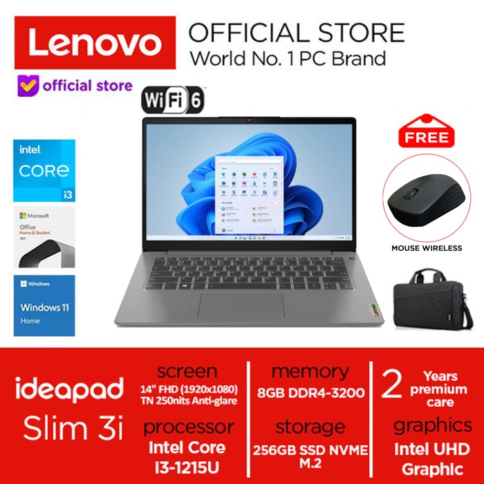 LAPTOP LENOVO IDEAPAD SLIM 3I I3-1215U 256GB SSD 8GB WIN11+OHS - MISTY BLUE, 8GB