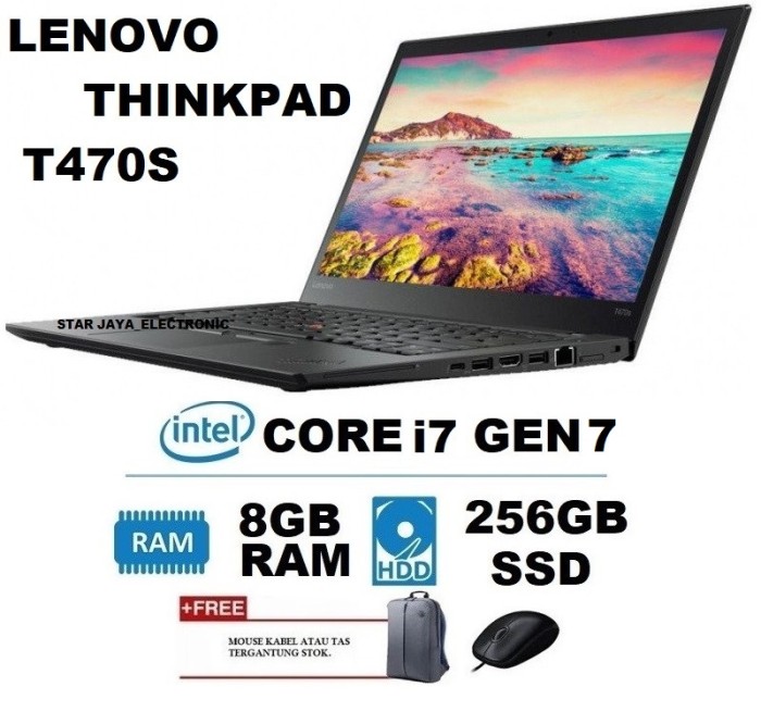 PROMO LAPTOP LENOVO TOUCHSCREEN T470S CORE I7 GEN 7 RAM 8GB/256 SSD - T450 I5-5, 8GB/256GB